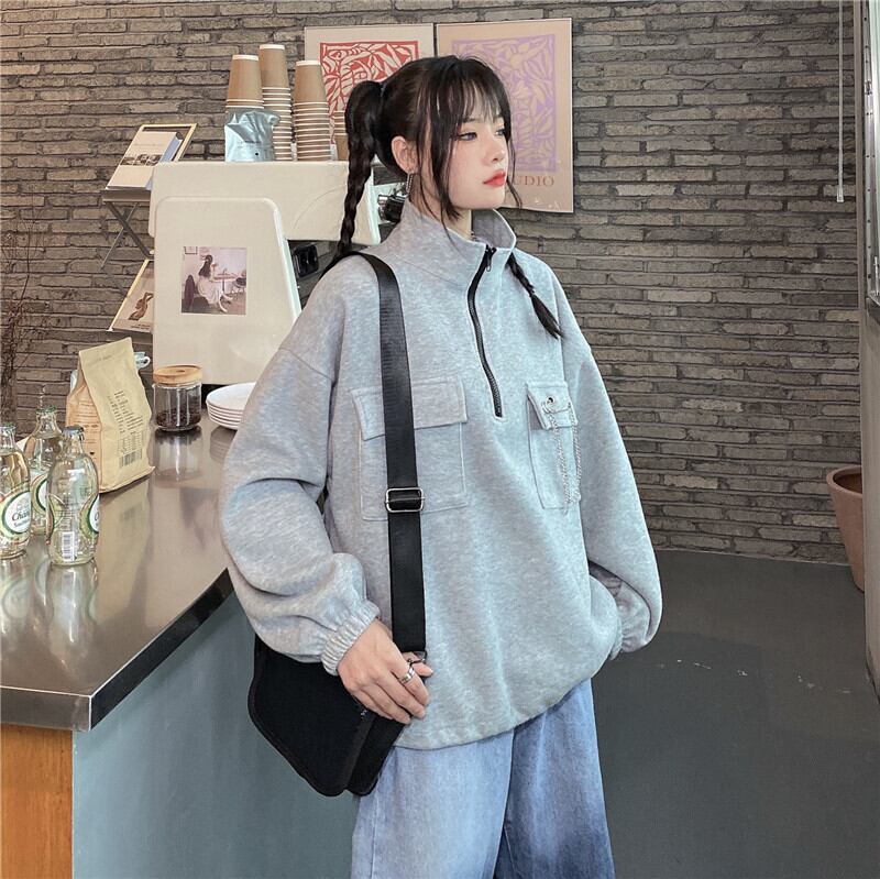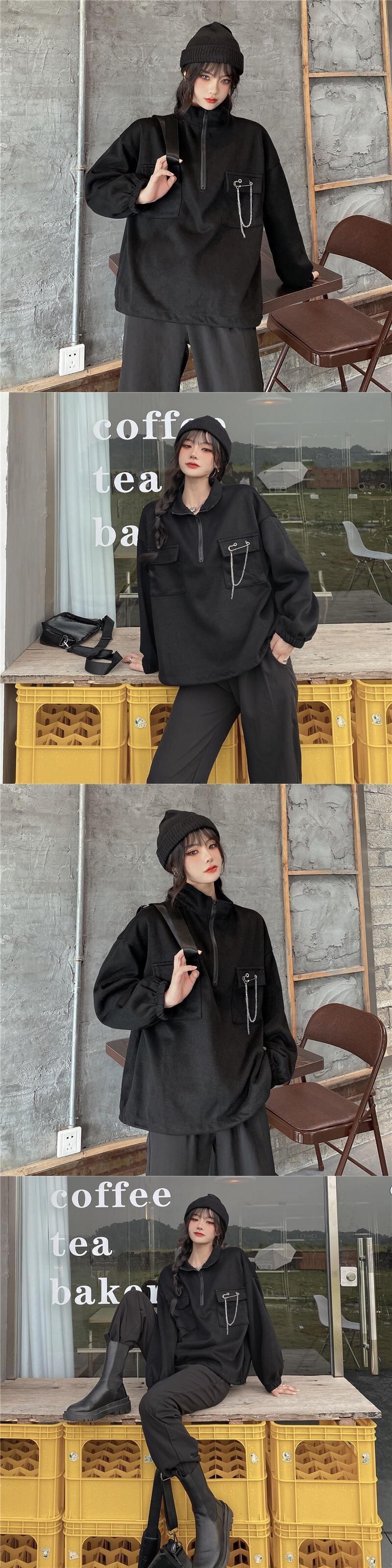 ルーズカジュアルスタイル長袖 長そでスリーブ 袖スタンドカラーカラープルオーバー トップス レディース ロング マキシロング丈 マキシ丈 女性 レディース ゆめかわ64490362009 | nice import1