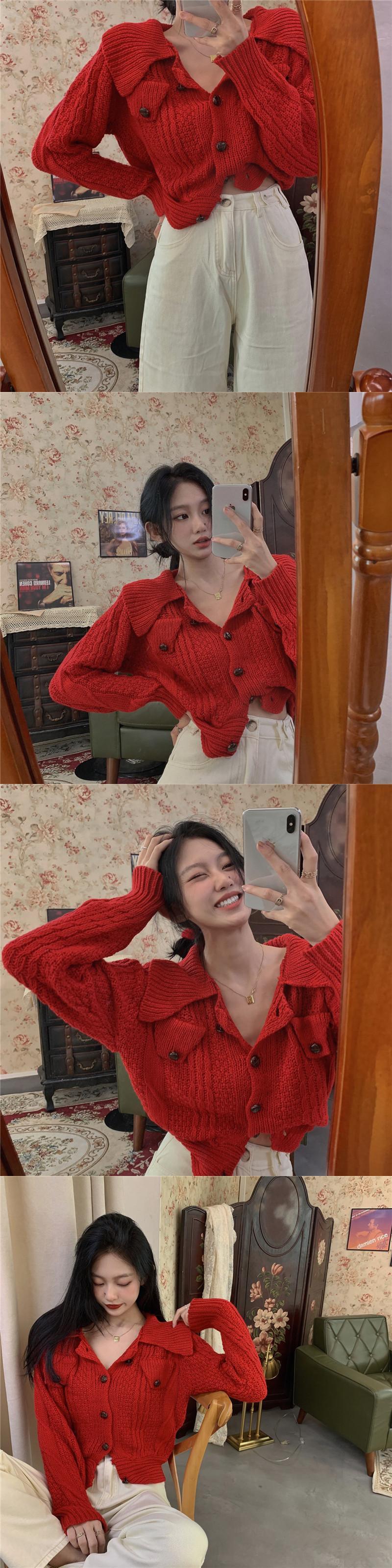 スタンダードニット セーターカーディガン 上着レッド 赤ウールショート ショート丈 ミニ ミニ丈長袖 長そでスリーブ 袖ニットジャケット 上着 コートレディース ロング マキシロング丈 マキシ丈 レトロ 女性 レディース ゆめかわ16894676671 | nice import1