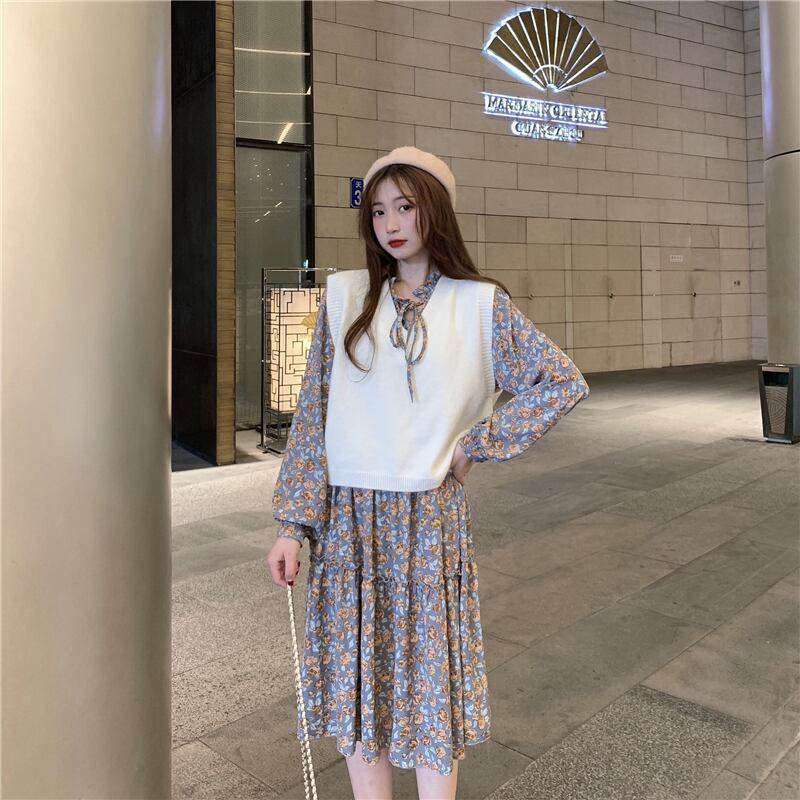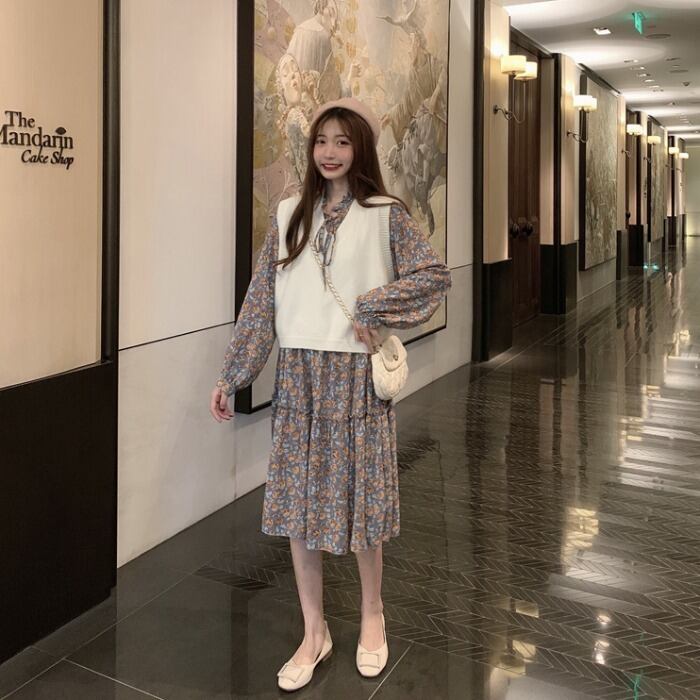 色:枯れたバラのドレスワンピース,白いベストワンピース