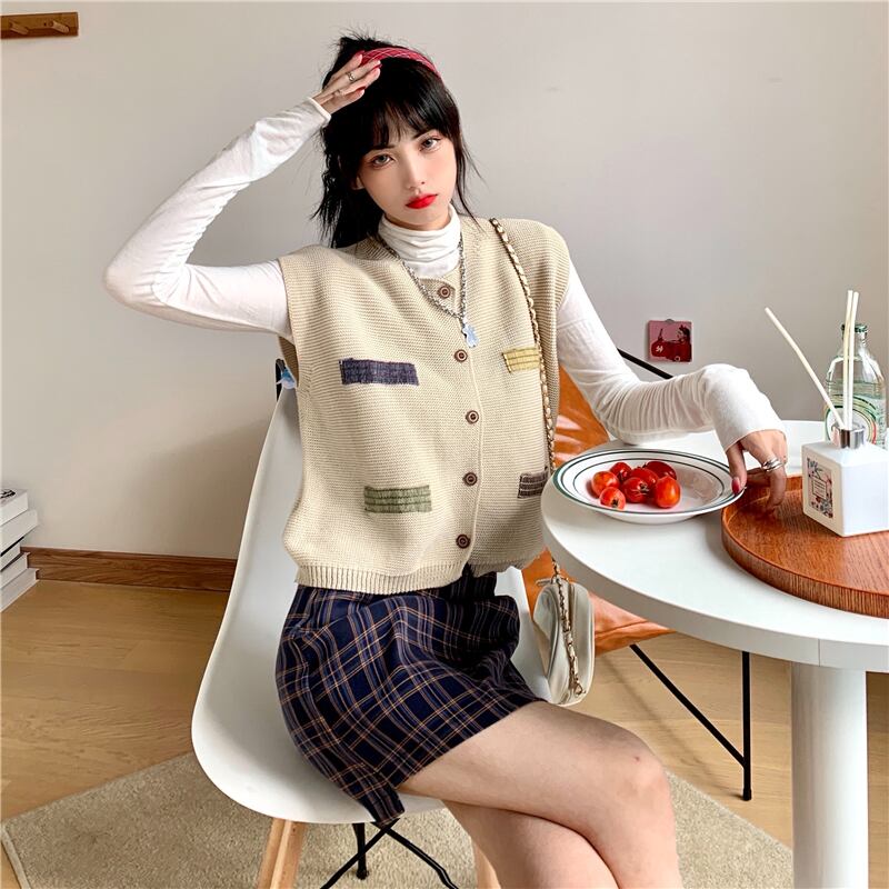 色:ブルーグリッドシングルピース,コーヒー色格子シングルピース,アプリコットベストワンピース,黄色のベストワンピース