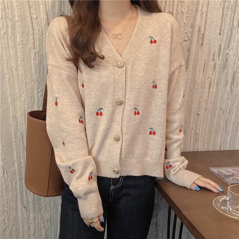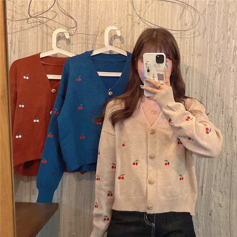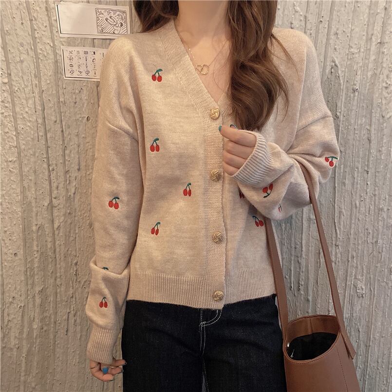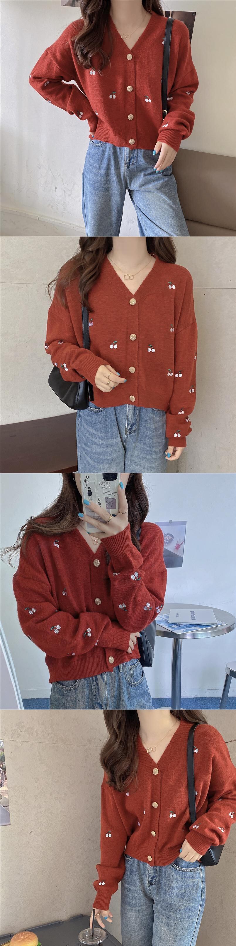 スタンダードVネックニット セーターコート ルーズニットカーディガン 上着レディース ロング マキシロング丈 マキシ丈 レッド 赤 レトロ 刺繍 女性 レディース ゆめかわ6950563837 | nice import1