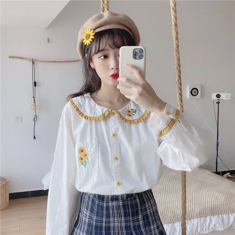 刺繍カラー長袖 長そでスリーブ 袖ホワイト 白シャツ ロング マキシロング丈 マキシ丈 かわいい 可愛い ガーリー 大人可愛い 大人かわいい フェミニン 大人ガーリー 花柄 お花 フラワー 女性 レディース ゆめかわ66605223299 | nice import1