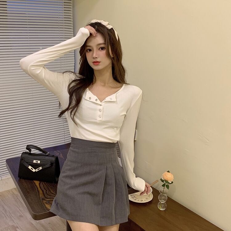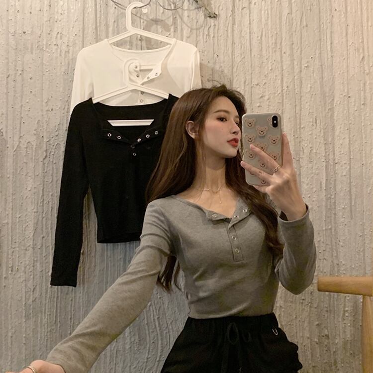 ソリッド カラーハイウエストウエストシャツ ショート ショート丈 ミニ ミニ丈長袖 長そでスリーブ 袖ラウンドネックプルオーバー Tシャツ ハイウェスト ロング マキシロング丈 マキシ丈 ソリッドカラー 女性 レディース ゆめかわ36752129462 | nice import1