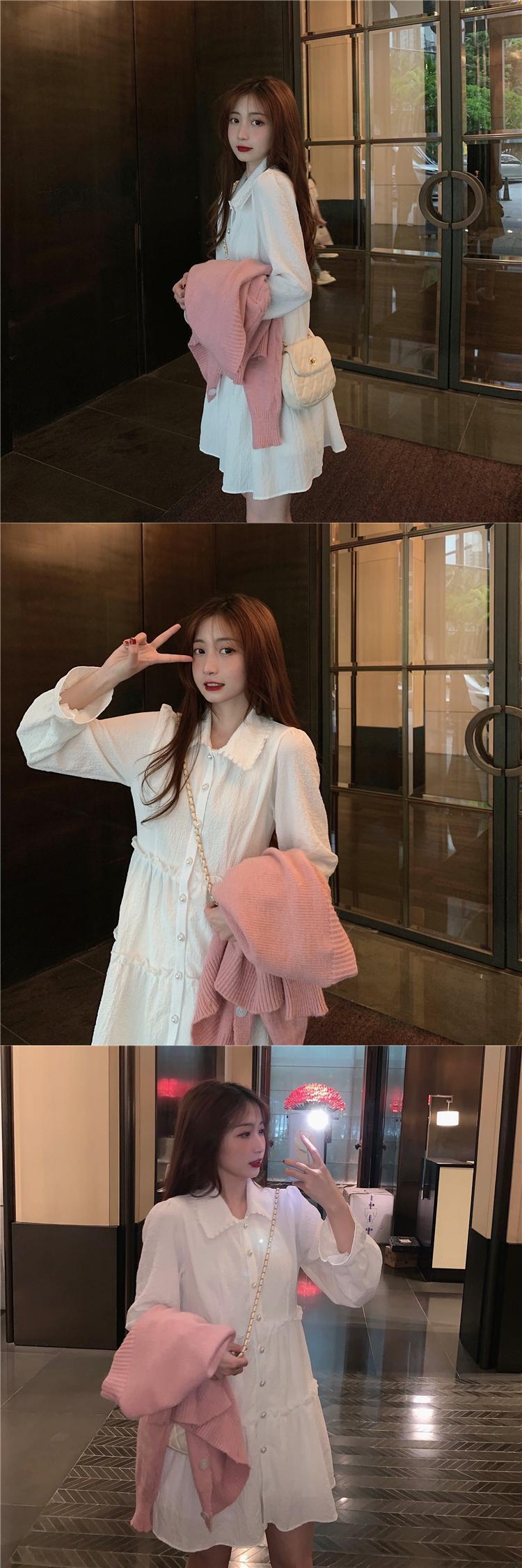 色:白いワンピース,ピンクカーディガンワンピース