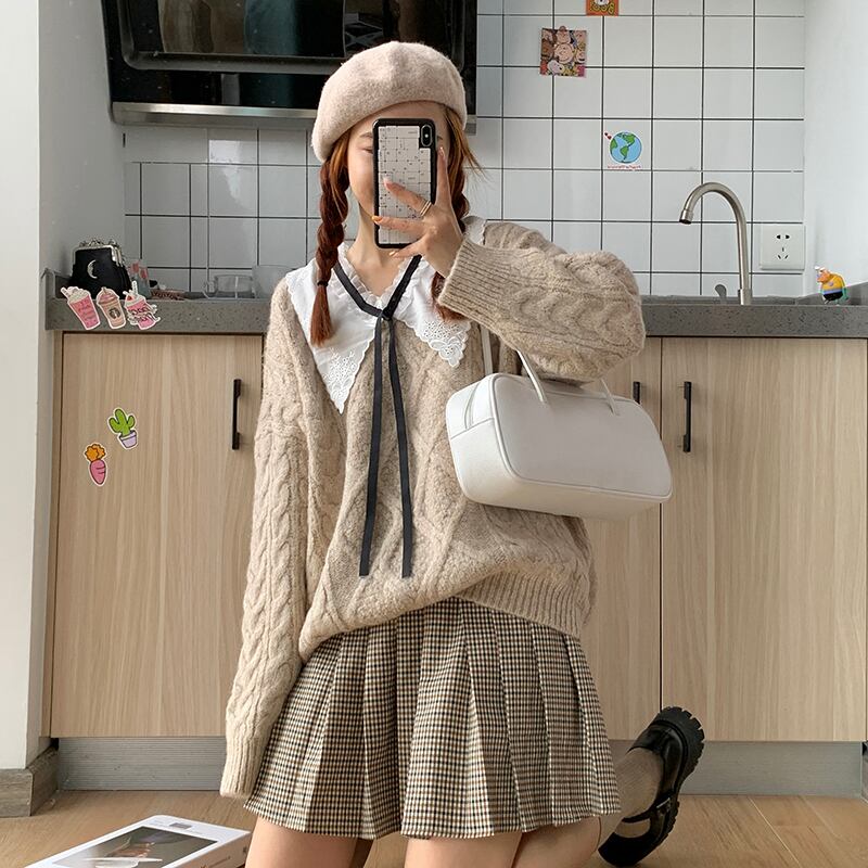 ニットニット セータープリーツスカート リボン かわいい 可愛い ガーリー 大人可愛い 大人かわいい フェミニン 大人ガーリー ステッチ 女性 レディース ゆめかわ31158728094 | nice import1