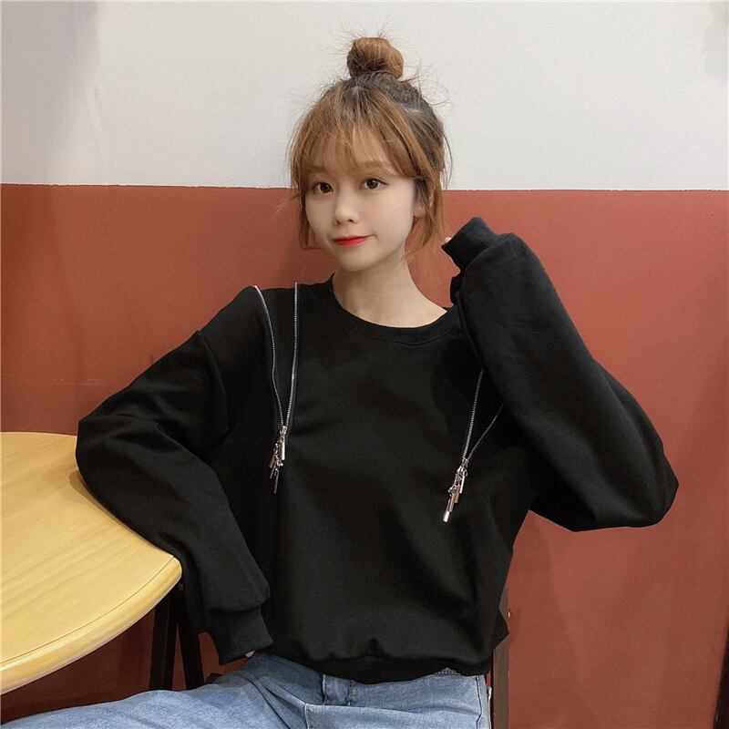 スタイルルーズダブルジッパーショート ショート丈 ミニ ミニ丈ニット セーターソリッド カラーシャツ ロング マキシロング丈 マキシ丈 ソリッドカラー 女性 レディース ゆめかわ8672348547 | nice import1