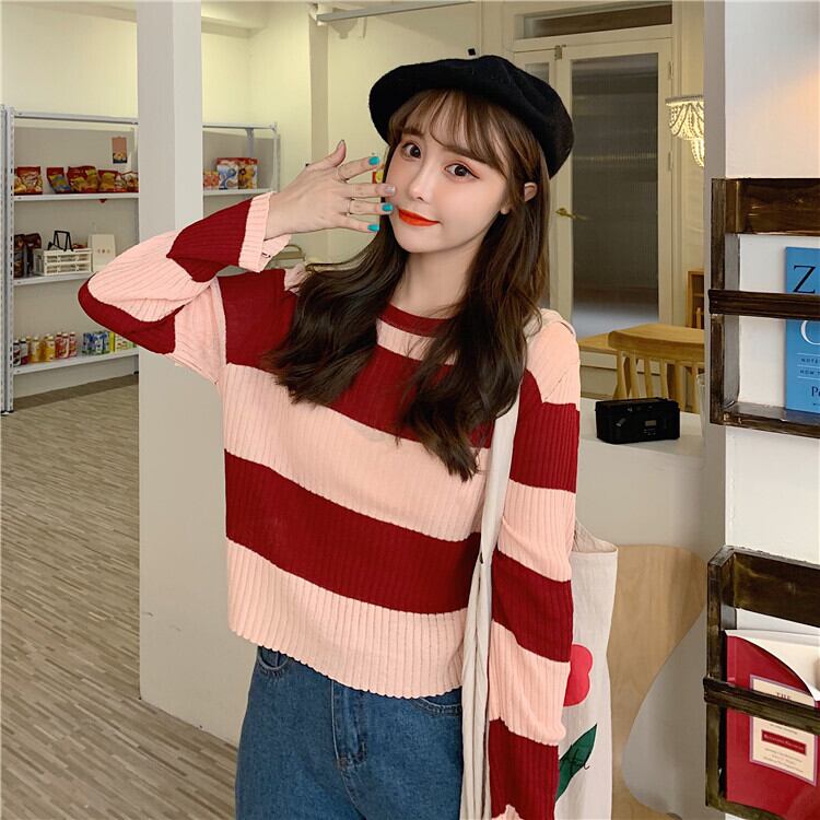 ラウンドネックプルオーバー ニット セーターレディースショート ショート丈 ミニ ミニ丈ルーズスタンダードストライプトップス ロング マキシロング丈 マキシ丈 レトロ 女性 レディース ゆめかわ29591940718 | nice import1