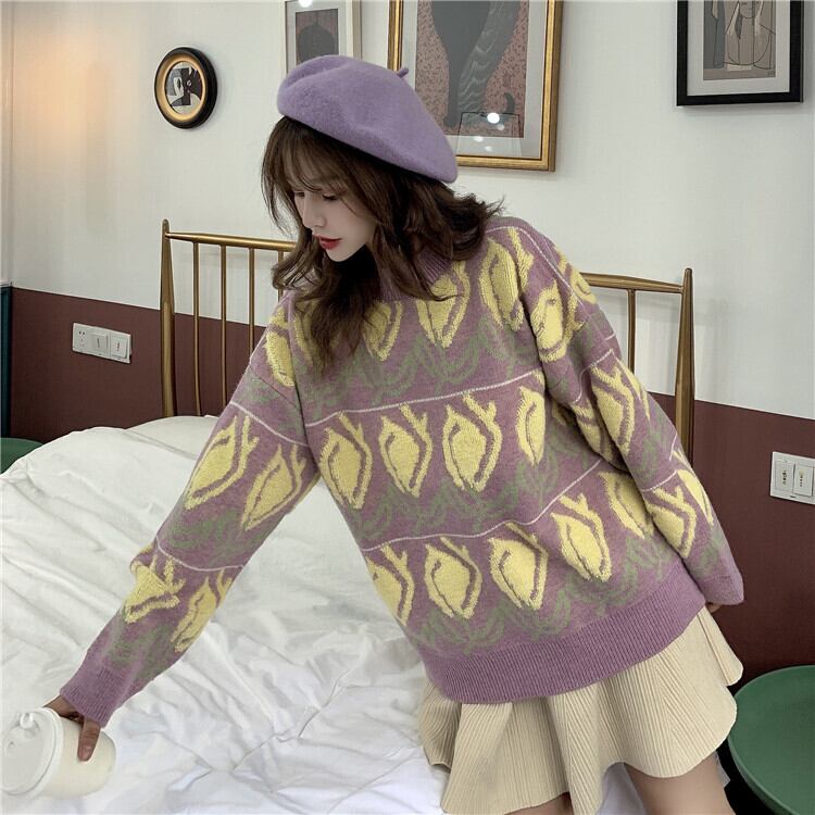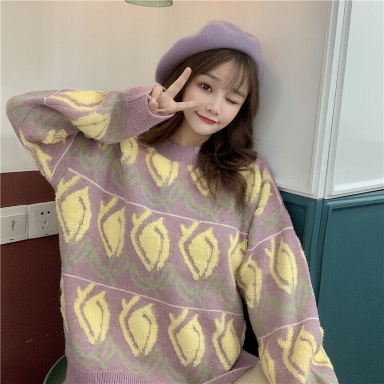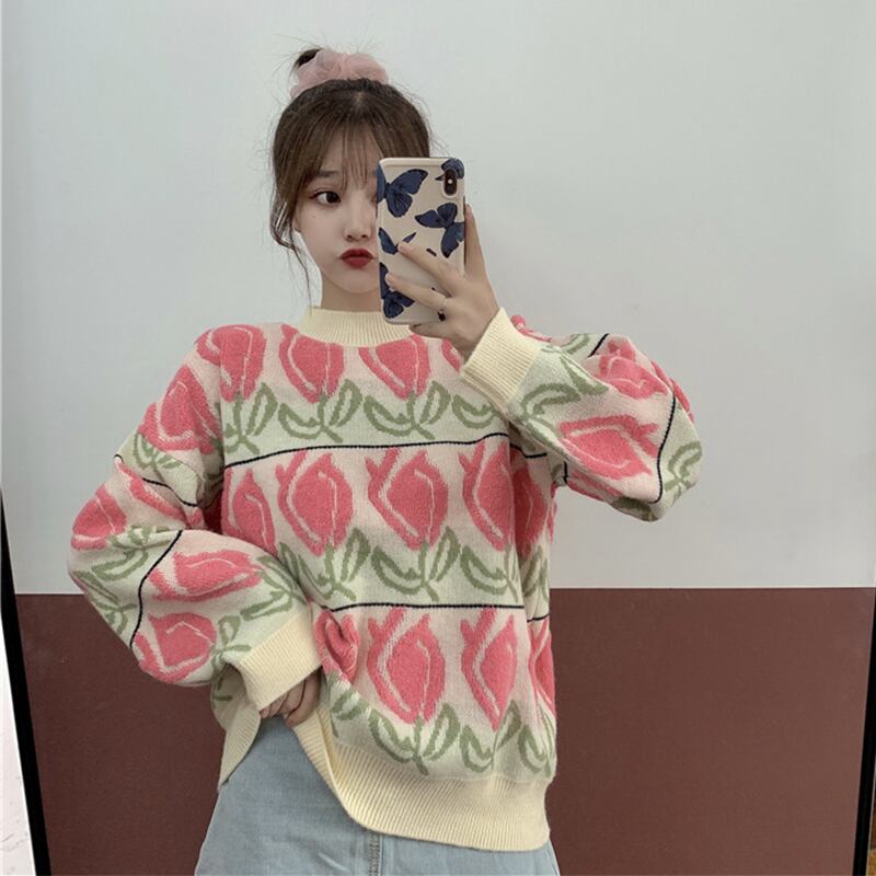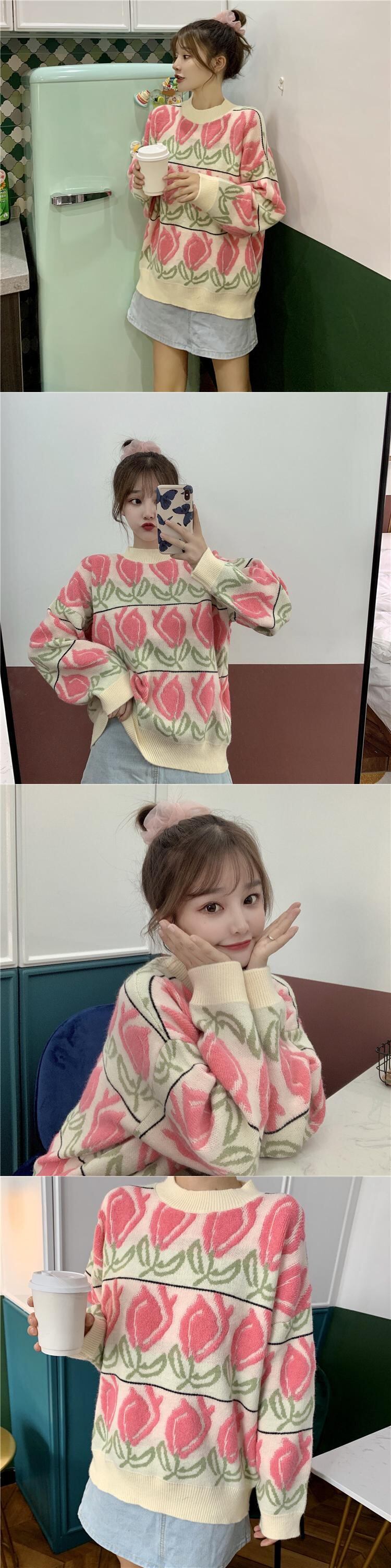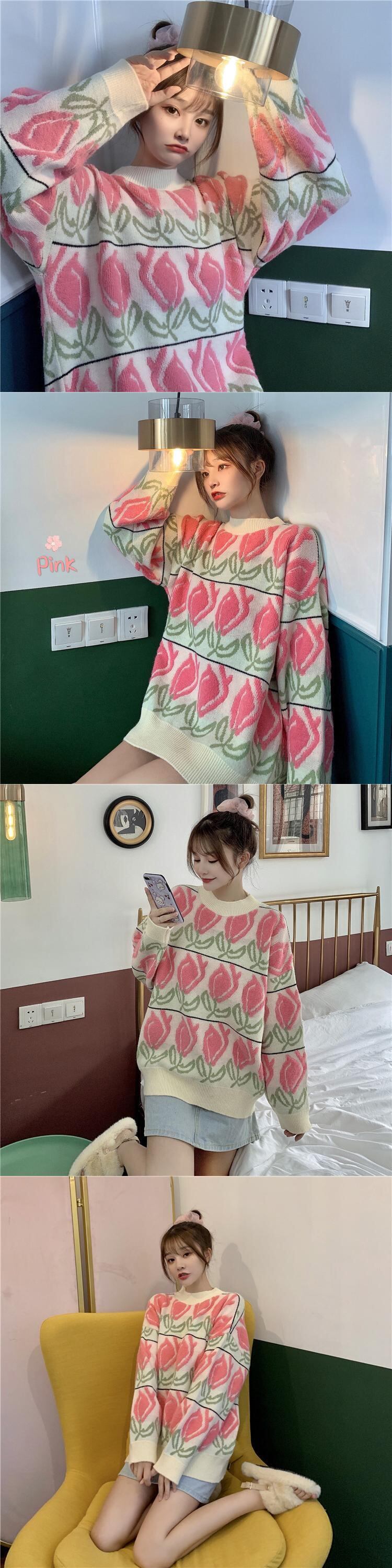 スタイルニット セーターレディースラウンドネックジャカード ロング マキシロング丈 マキシ丈 かわいい 可愛い ガーリー 大人可愛い 大人かわいい フェミニン 大人ガーリー 花柄 お花 フラワー 女性 レディース ゆめかわ25211829445 | nice import1
