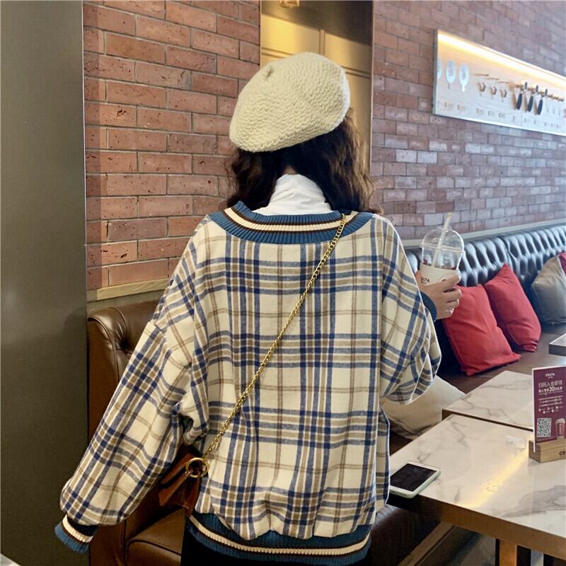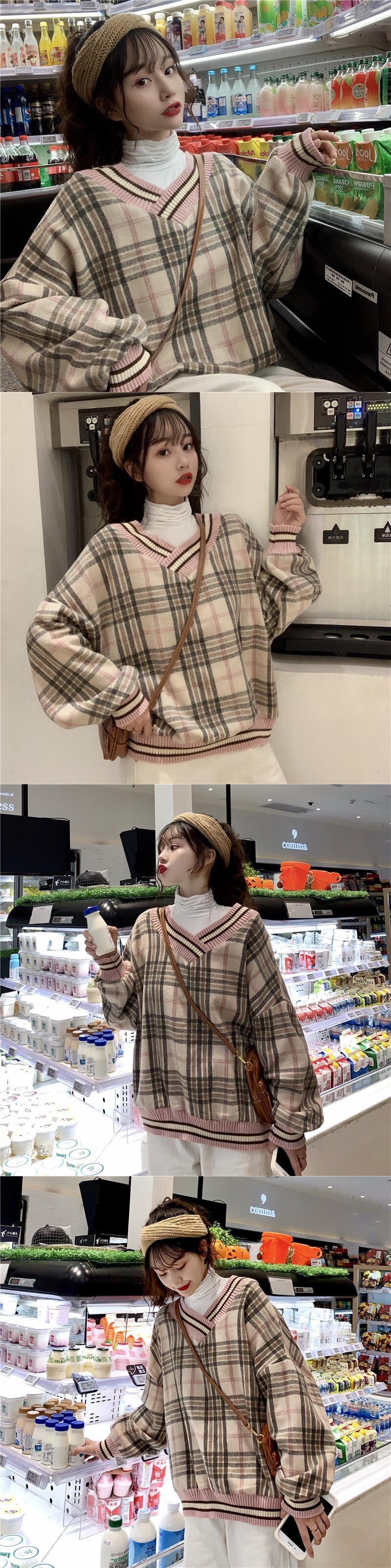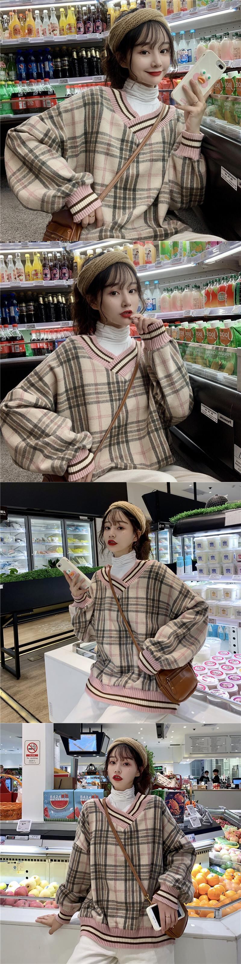 ルーズカラーVネックスタンダード格子柄 チェックプルオーバー ニット セーターレディース ロング マキシロング丈 マキシ丈 レトロ 女性 レディース ゆめかわ93147150753 | nice import1