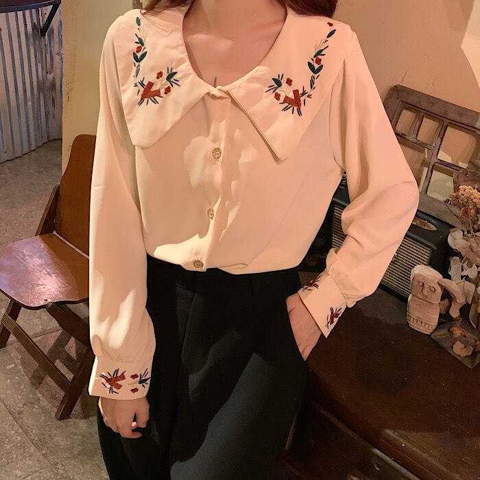 カラー花柄 お花 フラワー刺繍スタンダードシャツ トップス ロング マキシロング丈 マキシ丈 レトロ かわいい 可愛い ガーリー 大人可愛い 大人かわいい フェミニン 大人ガーリー 女性 レディース ゆめかわ29714761709 | nice import1