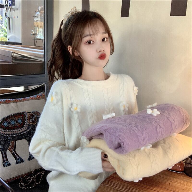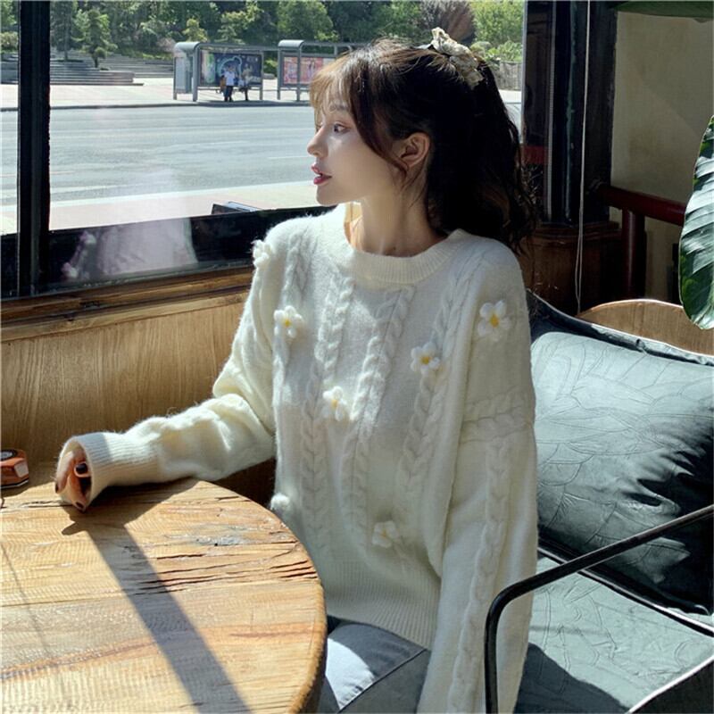 ニット セーターレディースルーズラウンドネック花柄 お花 フラワースタンダードトップス ロング マキシロング丈 マキシ丈 レトロ かわいい 可愛い ガーリー 大人可愛い 大人かわいい フェミニン 大人ガーリー ステッチ 女性 レディース ゆめかわ15754518566 | nice import1