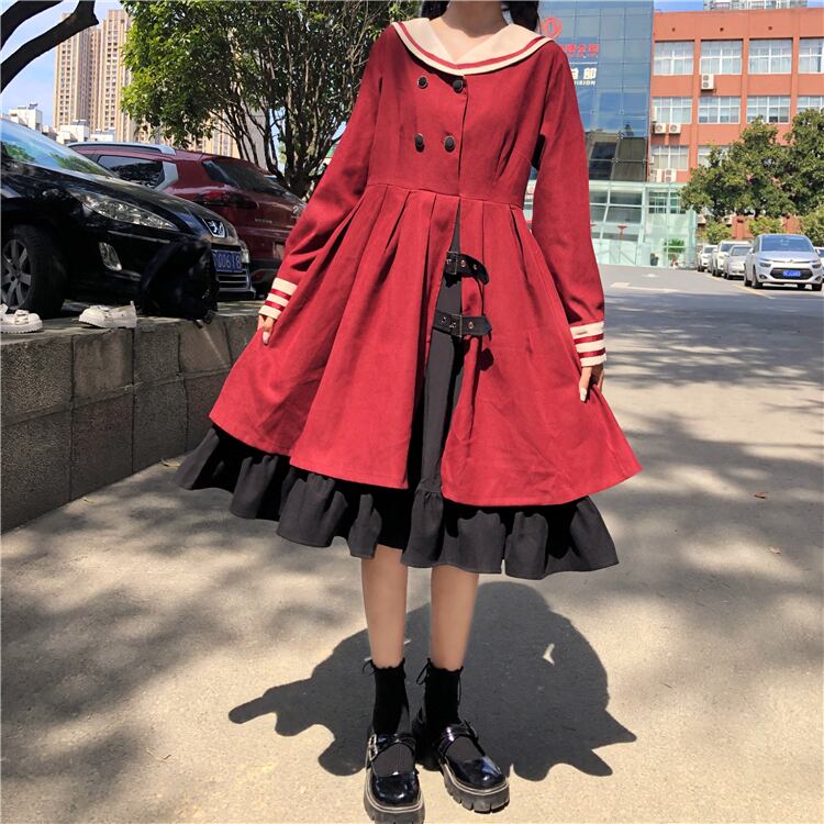 スカート ネイビー 紺色カラー長袖 長そでスリーブ 袖ハイウエストウエストプリーツドレス ワンピース ハイウェスト ロング マキシロング丈 マキシ丈 かわいい 可愛い ガーリー 大人可愛い 大人かわいい フェミニン 大人ガーリー ステッチ 女性 レディース ゆめかわ6199092597 | nice import1