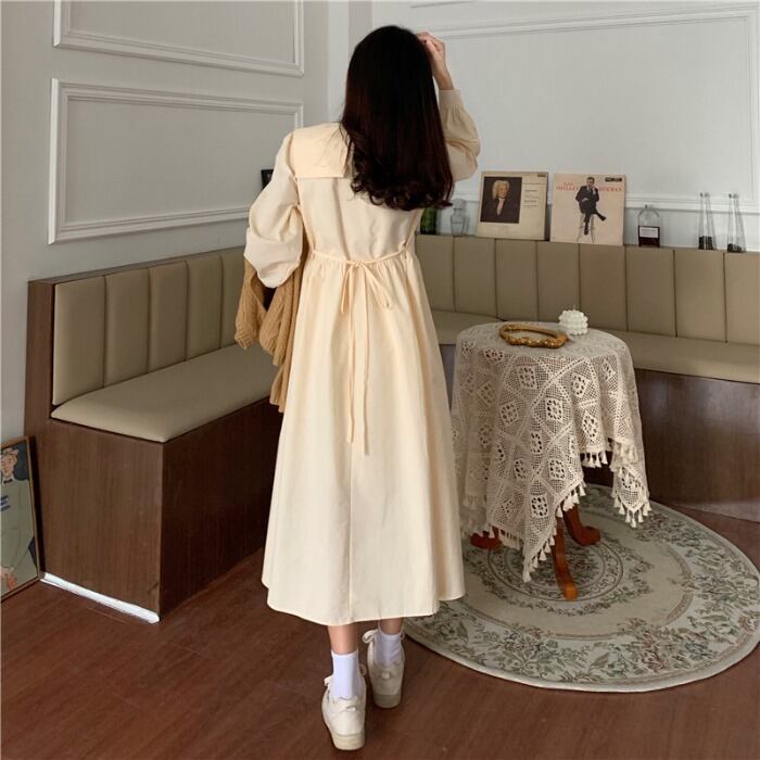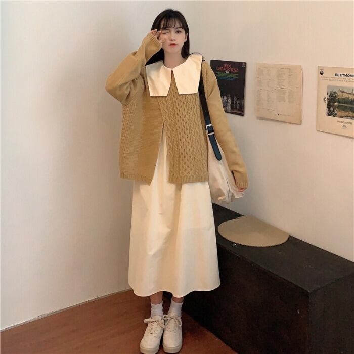 色:アプリコットワンピース,ブルーのロングスカートワンピース,キャメルセーターワンピース,青いセーターシングル
