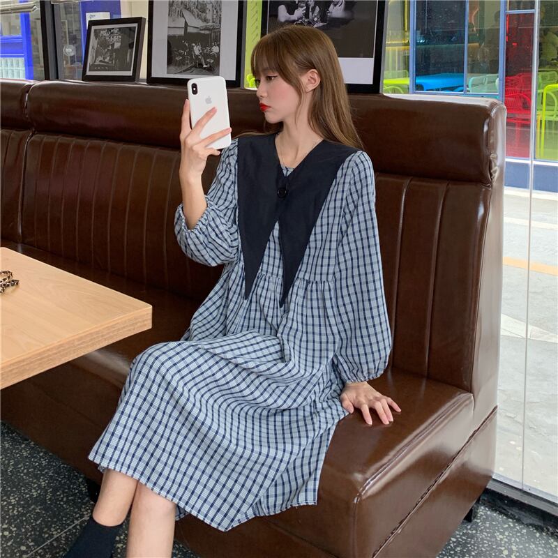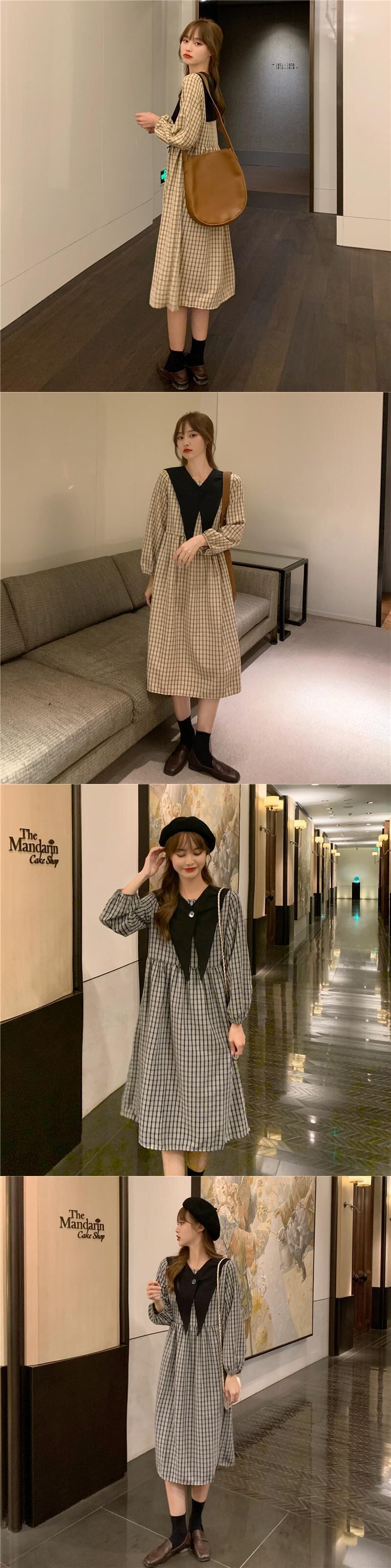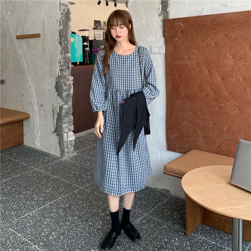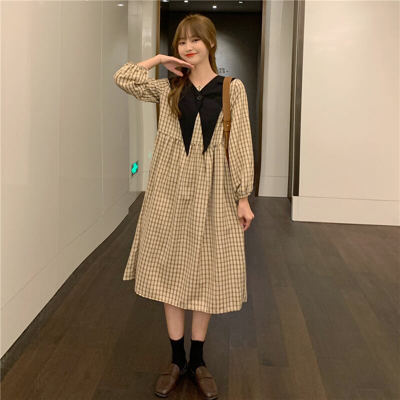 スタイルスタンダード格子柄 チェックドレス ワンピースブラック 黒ロング マキシ ロング丈 マキシ丈薄手長袖 長そでスリーブ 袖Aラインスカート マキシロング丈 レトロ 女性 レディース ゆめかわ70695570718 | nice import1