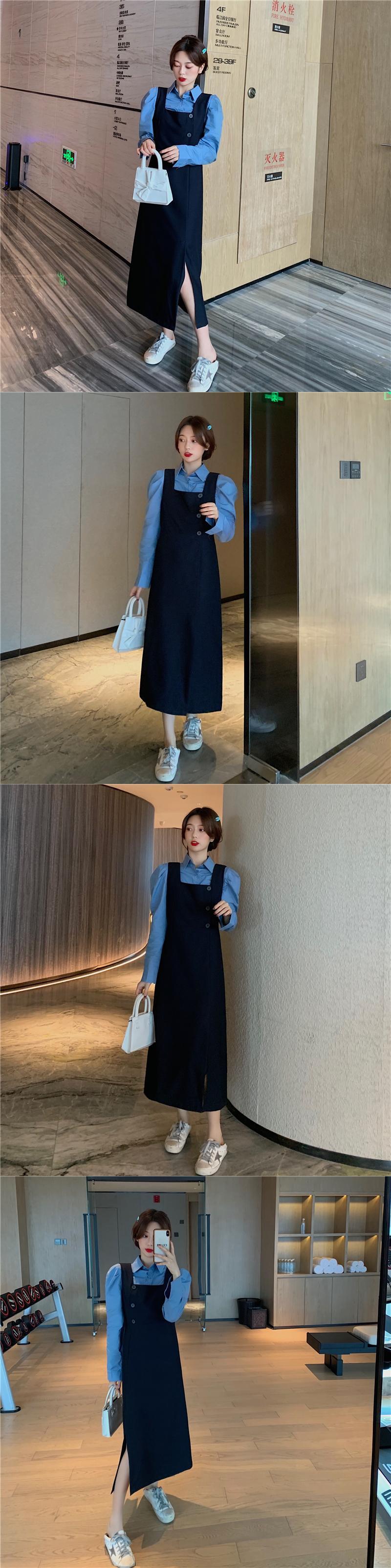 色:白いシャツワンピース,青いシャツ,ブラックスカートワンピース,ブルースカートワンピース
