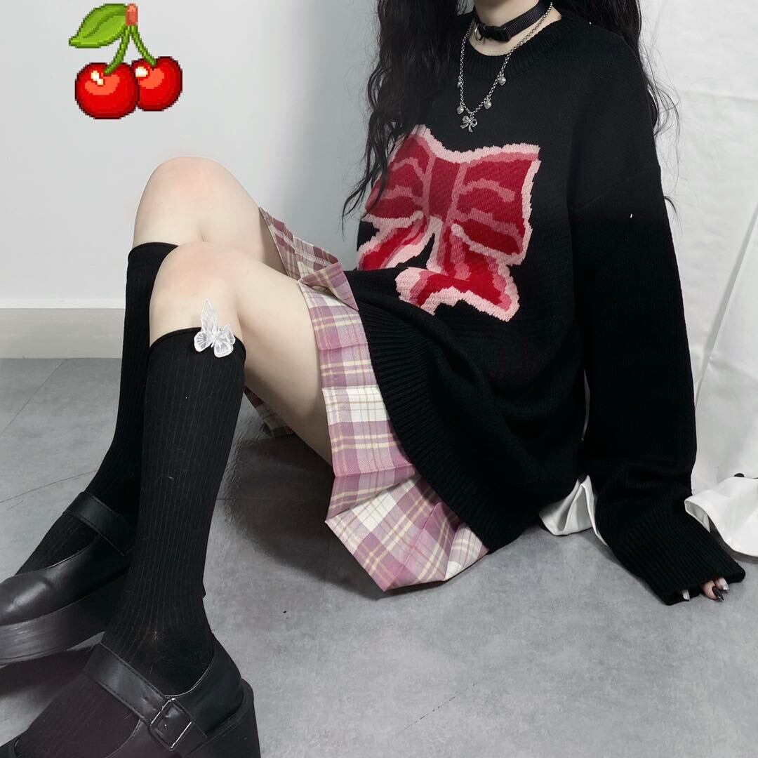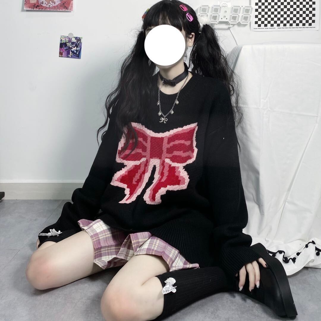 ニット セーターリボンジャカードスタイルルーズ ロング マキシロング丈 マキシ丈 かわいい 可愛い ガーリー 大人可愛い 大人かわいい フェミニン 大人ガーリー 女性 レディース ゆめかわ32961521994 | nice import1