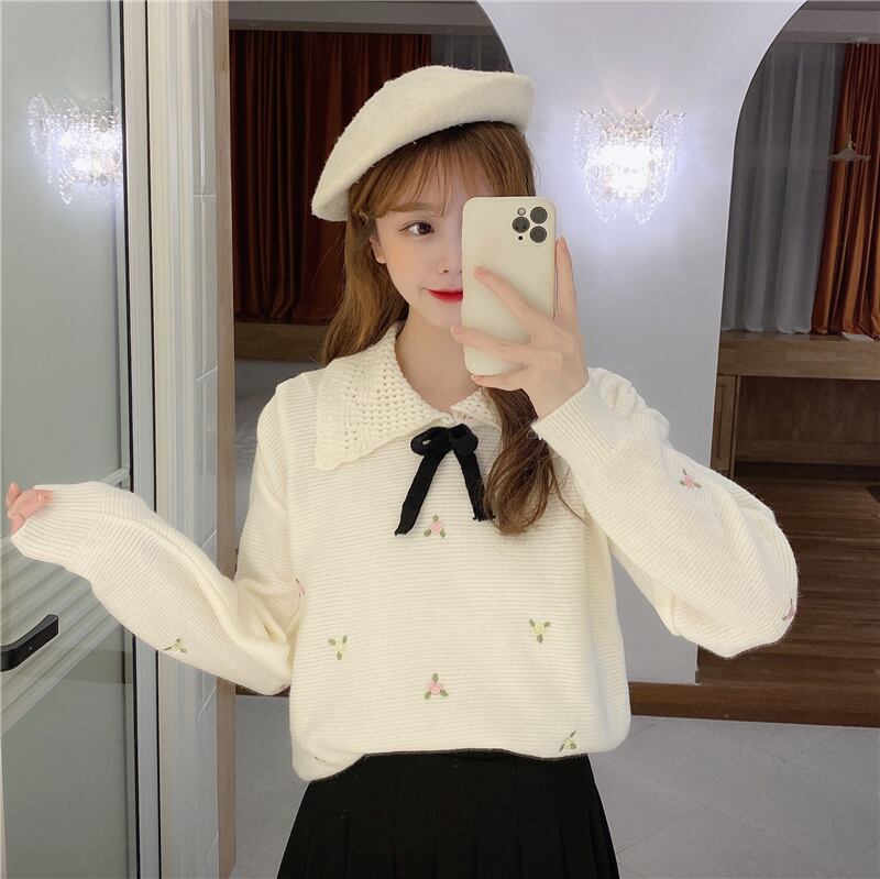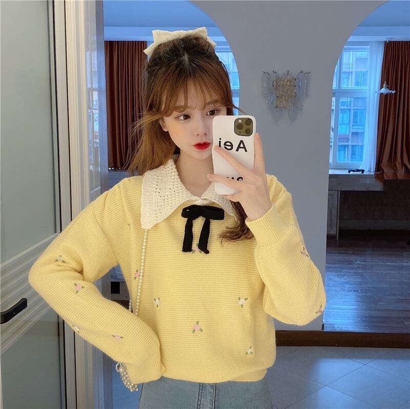 レースカラー花柄 お花 フラワー刺繍ニットニット セーター ロング マキシロング丈 マキシ丈 リボン かわいい 可愛い ガーリー 大人可愛い 大人かわいい フェミニン 大人ガーリー 女性 レディース ゆめかわ67798404260 | nice import1