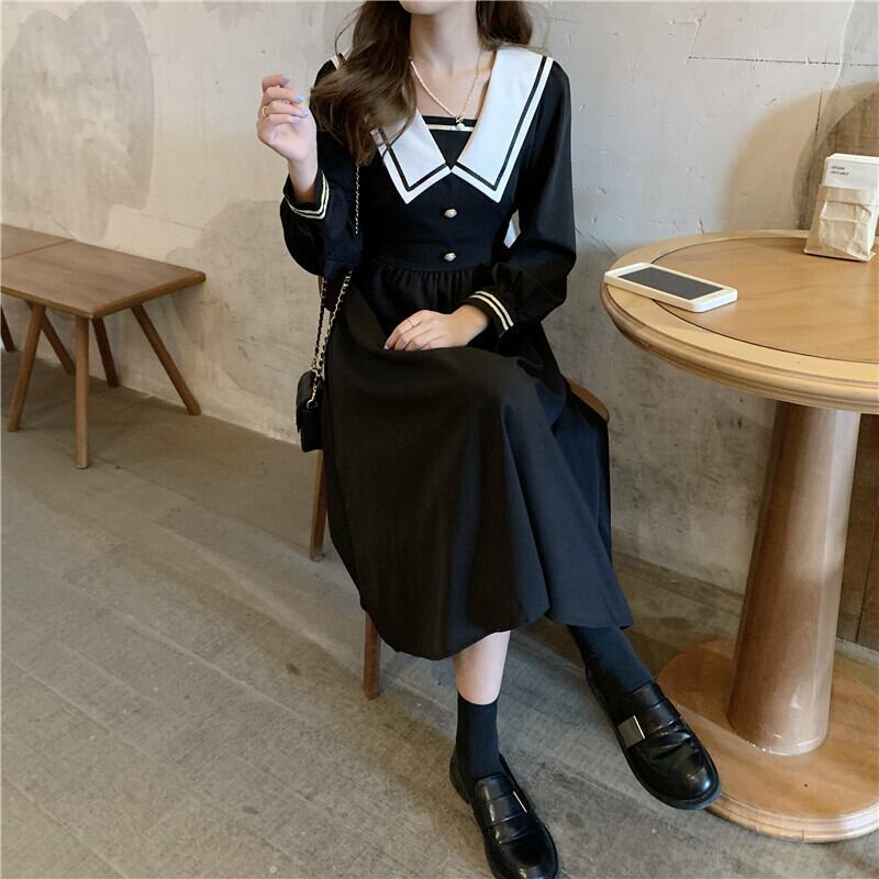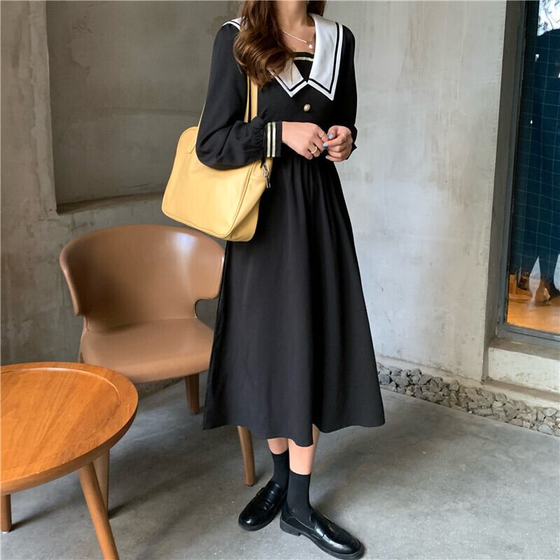 スタイルドレス ワンピースカラーネイビー 紺色ハイウエストウエストスタンダードブラック 黒 ハイウェスト ロング マキシロング丈 マキシ丈 レトロ 女性 レディース ゆめかわ18107219403 | nice import1