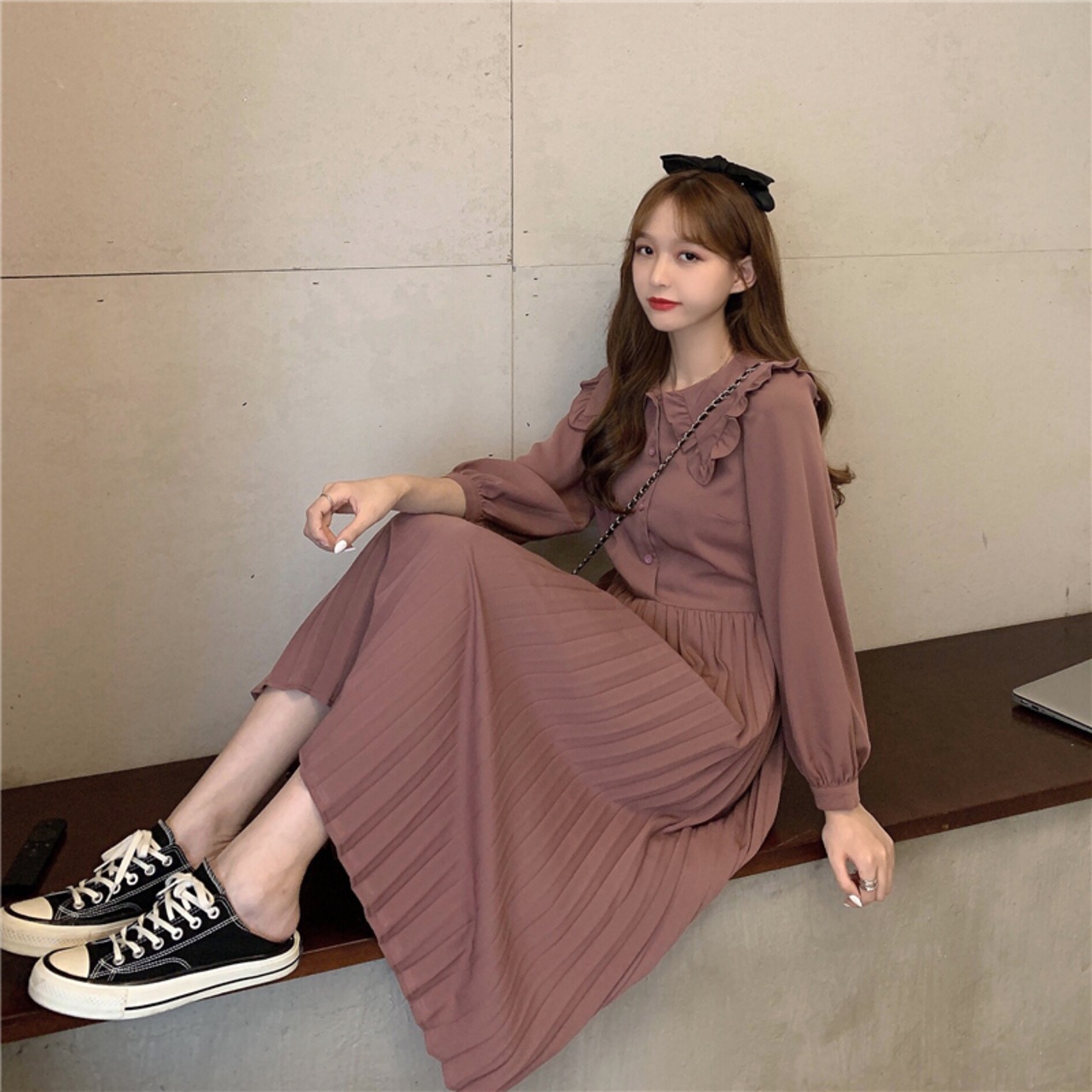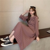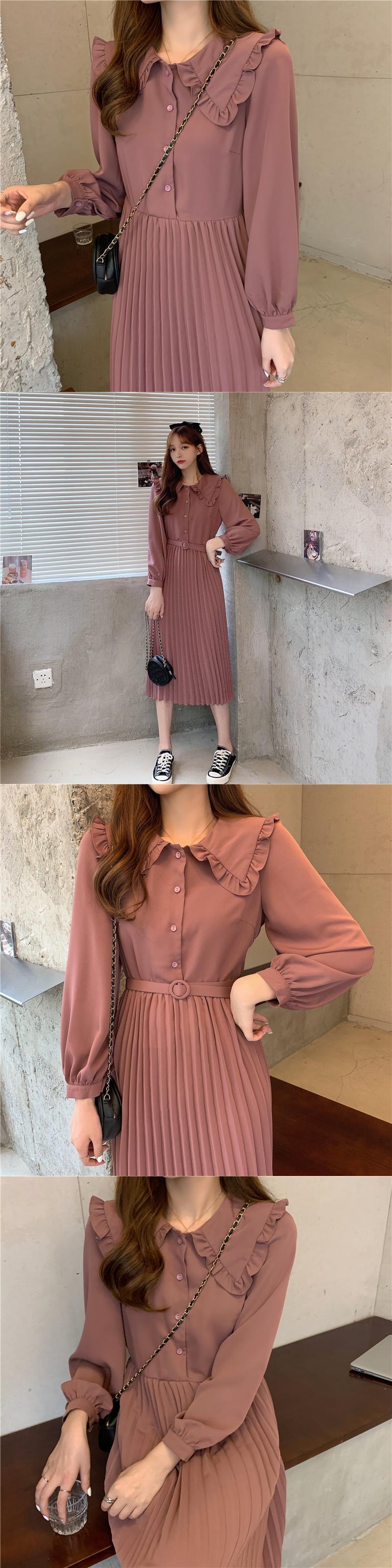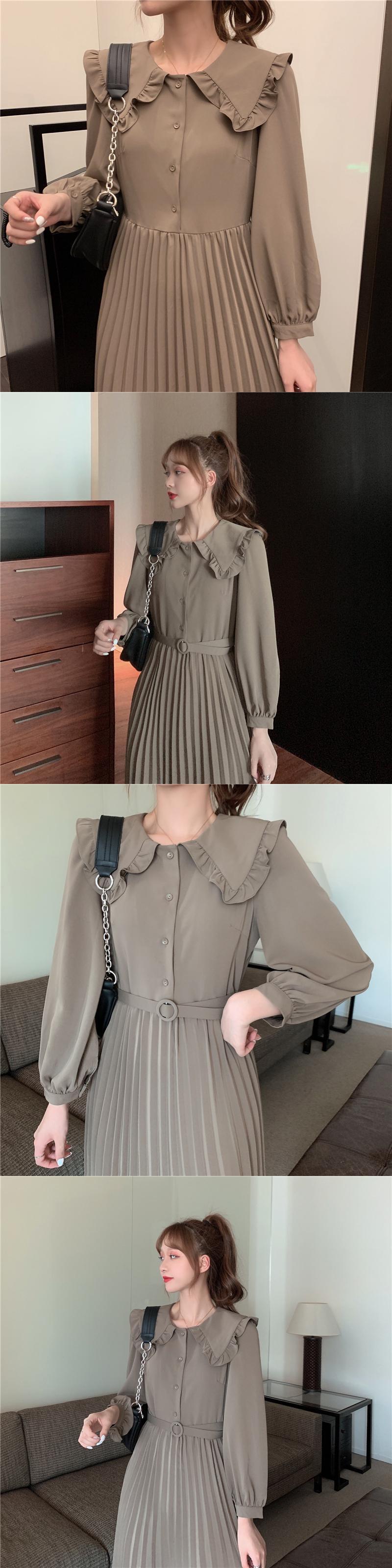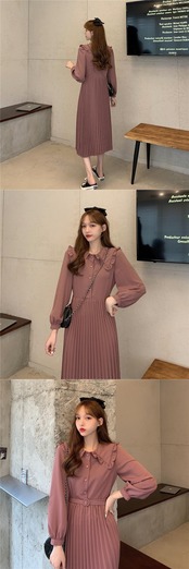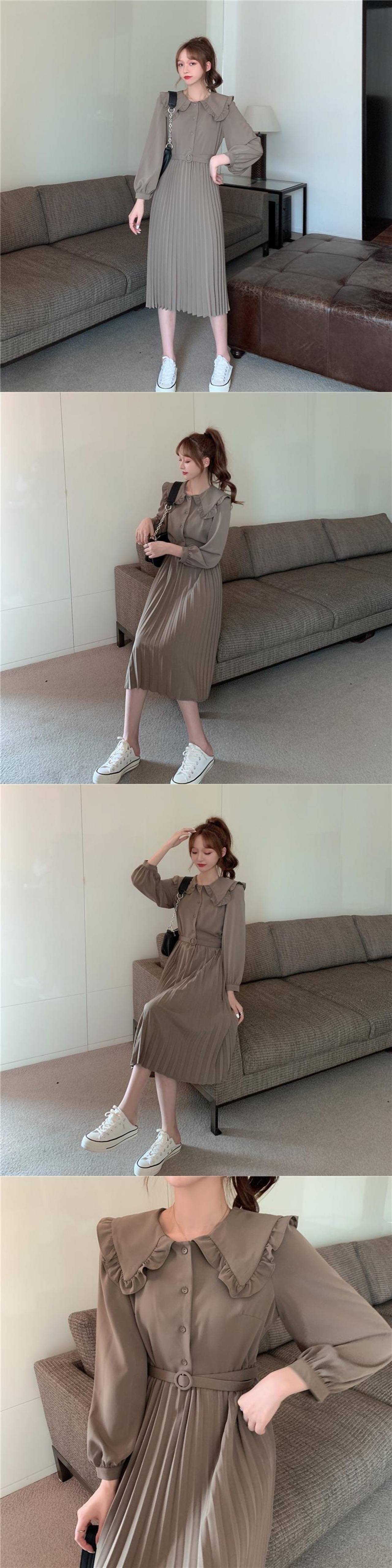 カラーウエストルーズ薄手長袖 長そでスリーブ 袖プリーツドレス ワンピース ロング マキシロング丈 マキシ丈 かわいい 可愛い ガーリー 大人可愛い 大人かわいい フェミニン 大人ガーリー 女性 レディース ゆめかわ90282020517 | nice import1