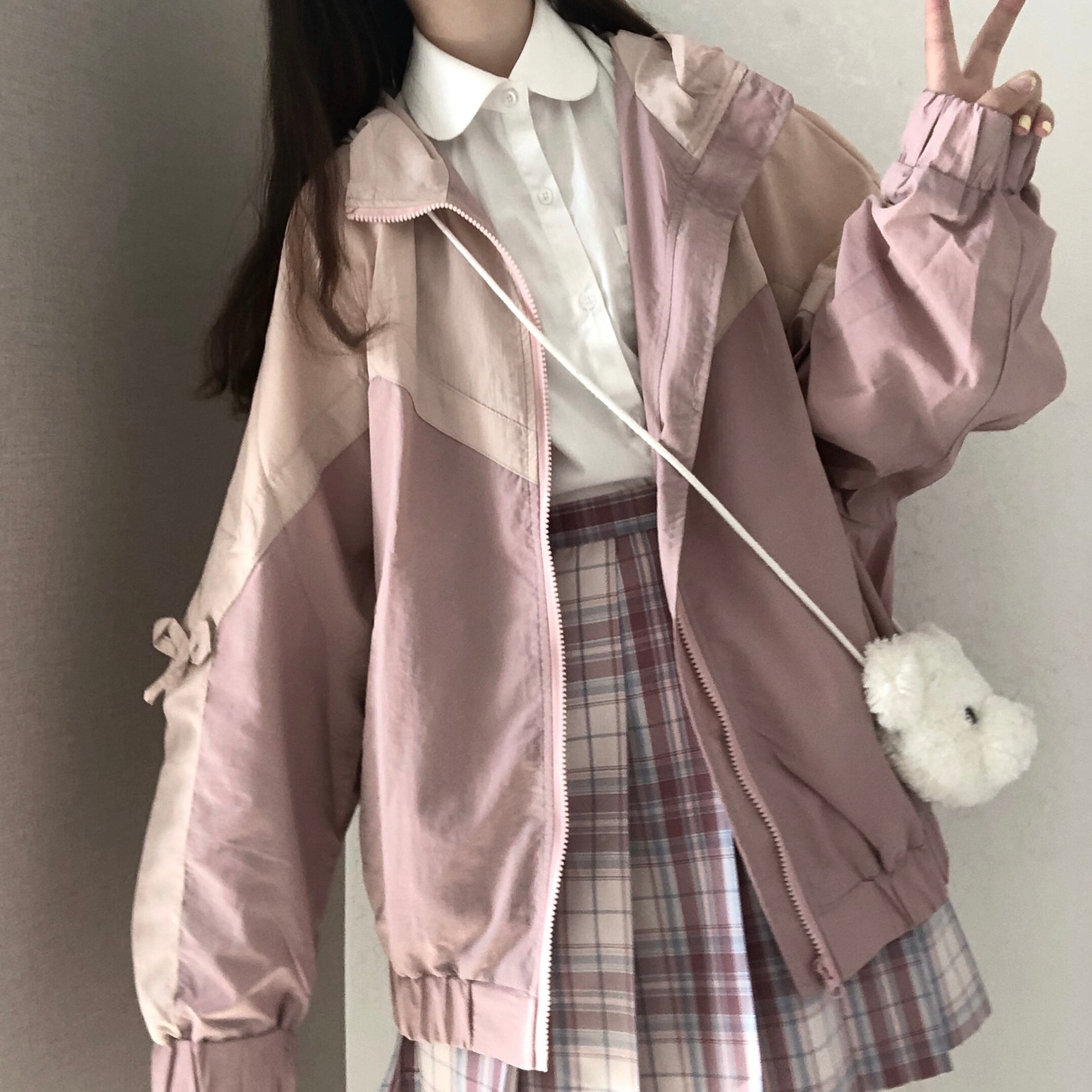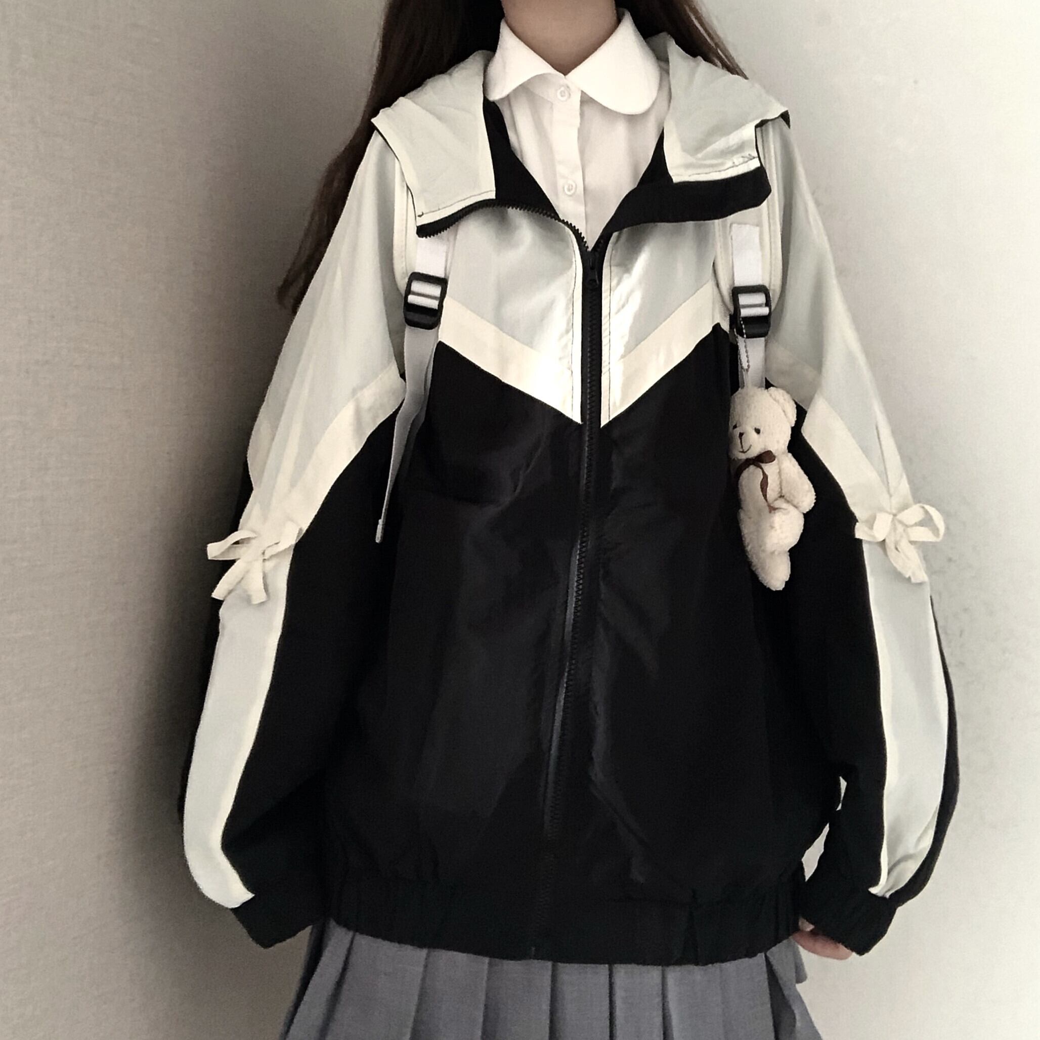 ルーズフードカラーリボン長袖 長そでスリーブ 袖スタイルジャケット 上着 コート ロング マキシロング丈 マキシ丈 ステッチ 女性 レディース ゆめかわ31673569620 | nice import1