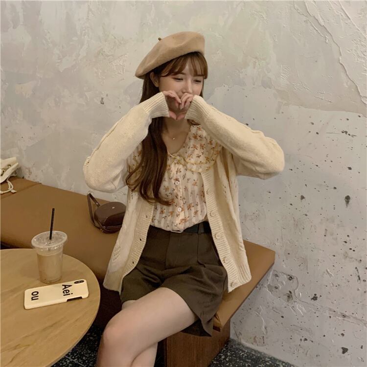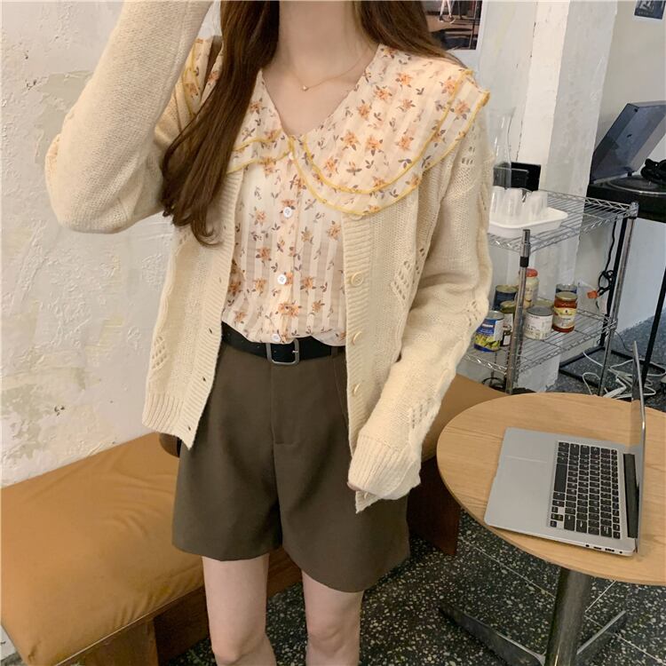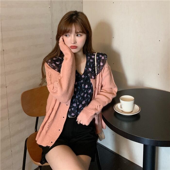 スタンダードカラー花柄 お花 フラワーシャツ ニット セーターニットカーディガン 上着ジャケット 上着 コートスタイル ロング マキシロング丈 マキシ丈 レトロ かわいい 可愛い ガーリー 大人可愛い 大人かわいい フェミニン 大人ガーリー 女性 レディース ゆめかわ87501227021 | nice import1