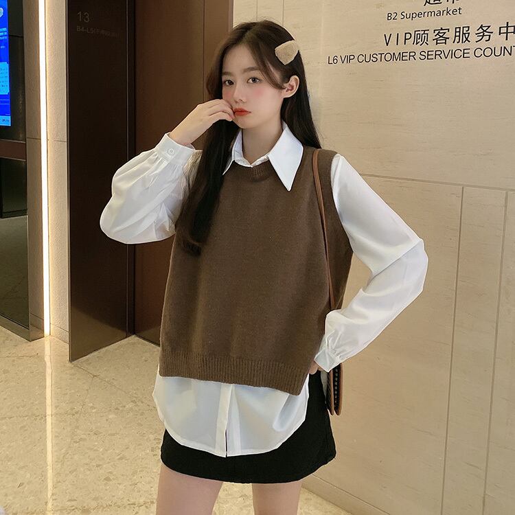 色:ブラックチョッキワンピース,コーヒーカラーチョッキワンピース,グレーのチョッキシングルピース,白インナーシャツシングル