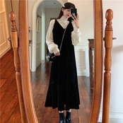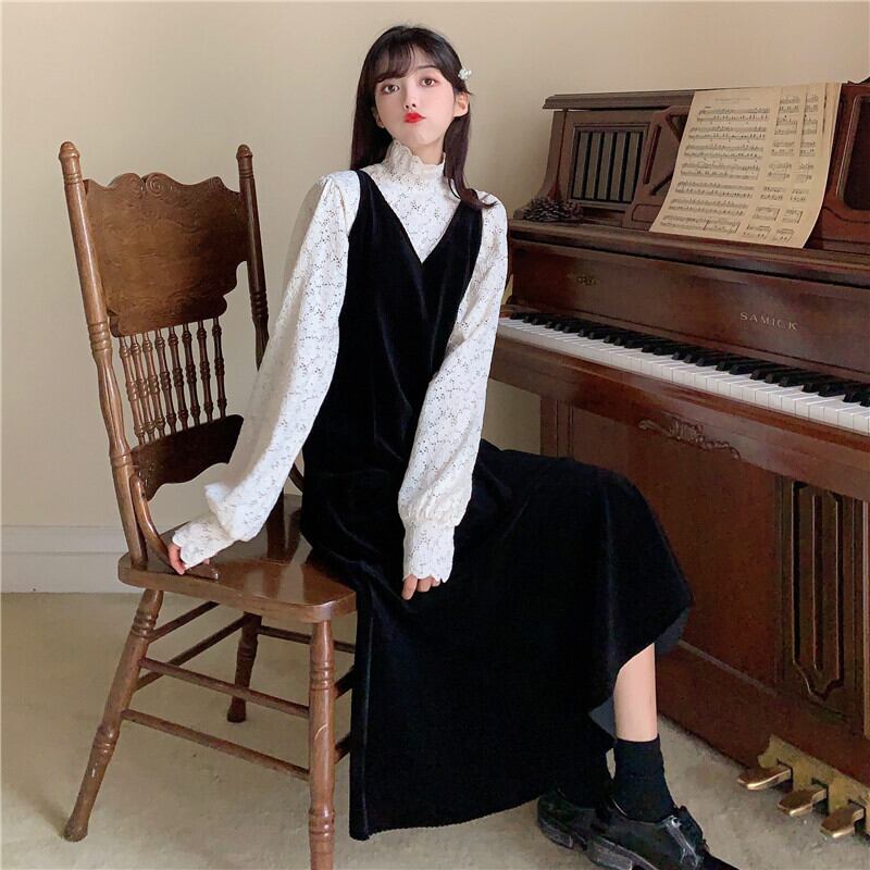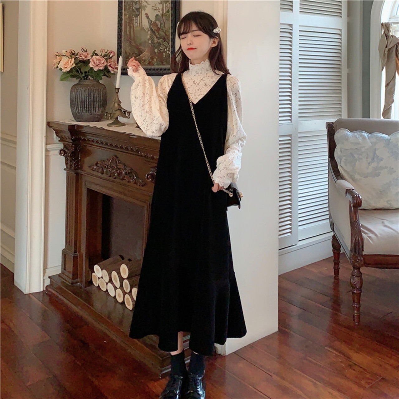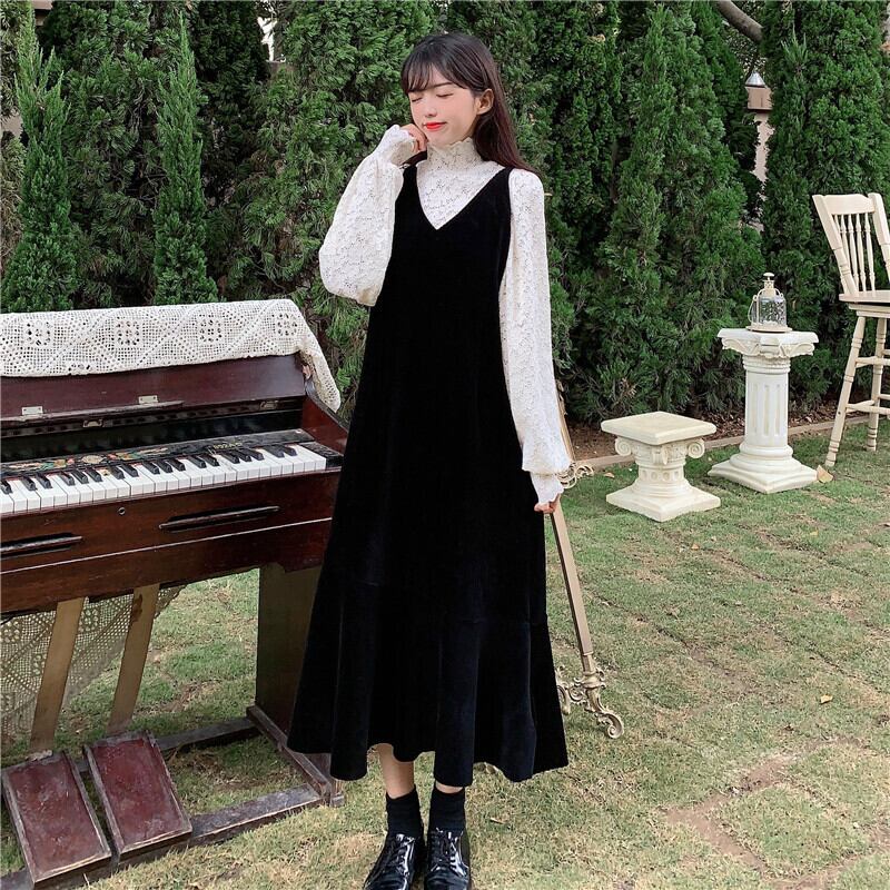 ベルベットブラック 黒ドレス ワンピースVネック かわいい 可愛い ガーリー 大人可愛い 大人かわいい フェミニン 大人ガーリー 女性 レディース ゆめかわ91946857591 | nice import1