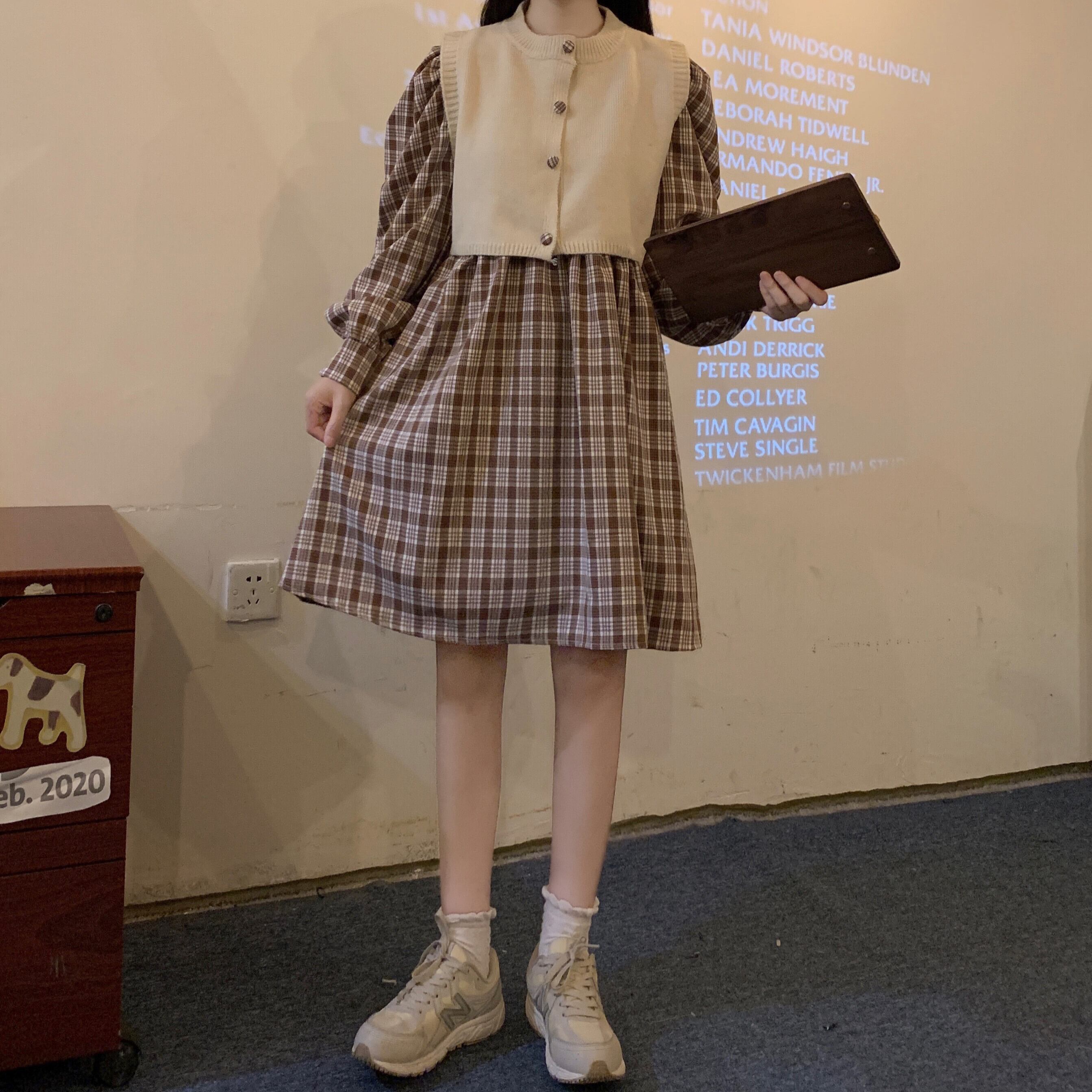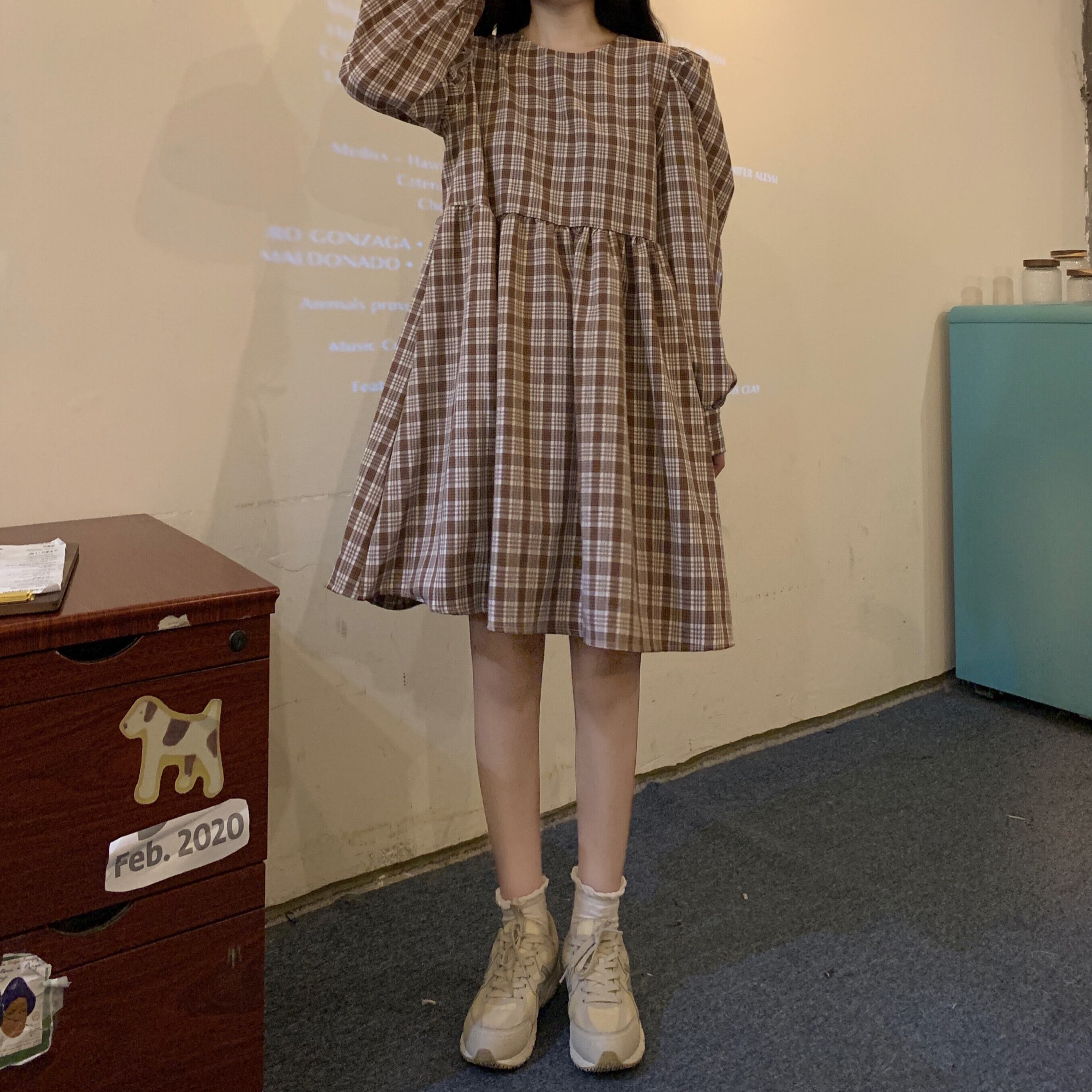 ルーズラウンドネックスリーブ 袖スタンダードカラー格子柄 チェックドレス ワンピース ランタンスリーブ バルーンスリーブ ランタン袖 バルーン袖 レトロ 女性 レディース ゆめかわ1327487148 | nice import1