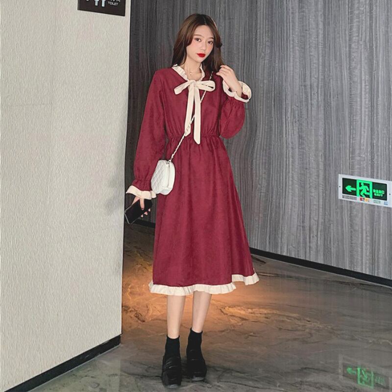スタンダードウエストスリーブ 袖長袖 長そでドレス ワンピース ロング マキシロング丈 マキシ丈 レッド 赤 レトロ レース レースアップ 女性 レディース ゆめかわ18653353598 | nice import1