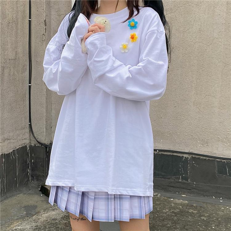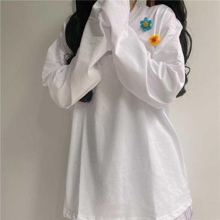 Tシャツ シャツ ベーシックトップス ロング マキシロング丈 マキシ丈 かわいい 可愛い ガーリー 大人可愛い 大人かわいい フェミニン 大人ガーリー 花柄 お花 フラワー ステッチ 女性 レディース ゆめかわ71089066423 | nice import1