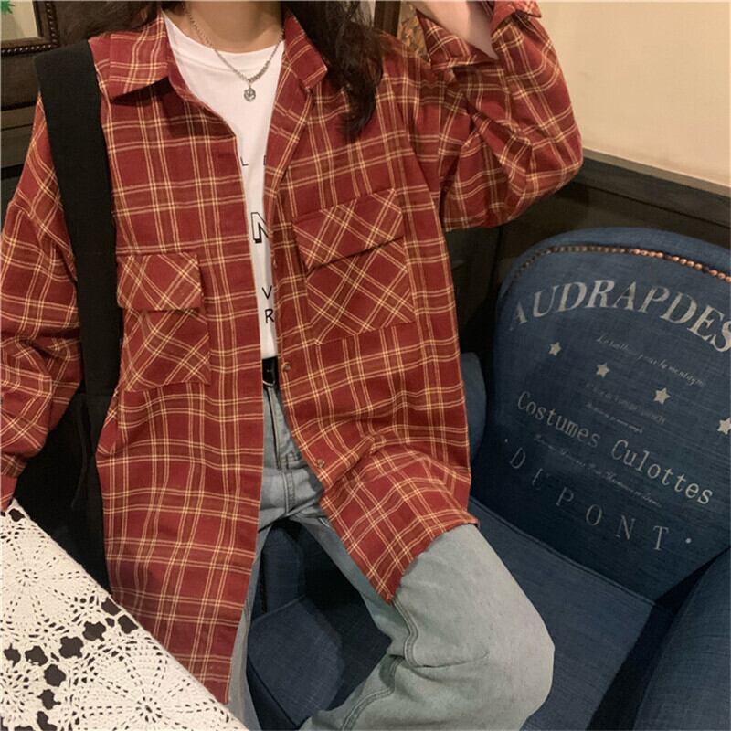 スタンダード格子柄 チェックシャツ ジャケット 上着 コートスタイルロング マキシ ロング丈 マキシ丈ルーズ マキシロング丈 レトロ 女性 レディース ゆめかわ93785488943 | nice import1