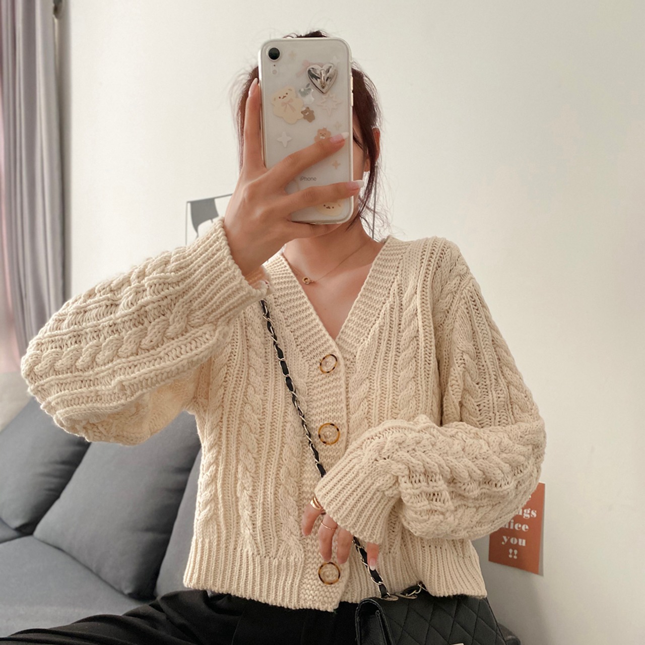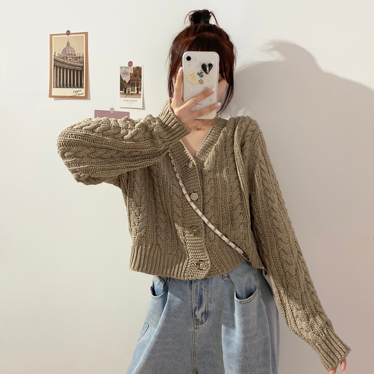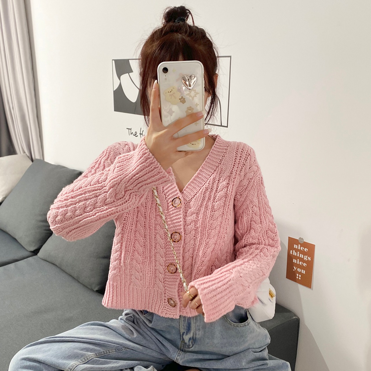 ニット カラールーズスタイルVネック長袖 長そでスリーブ 袖ショート ショート丈 ミニ ミニ丈ニット セーターコート カーディガン 上着 ロング マキシロング丈 マキシ丈 ピュア 女性 レディース ゆめかわ21501698964 | nice import1