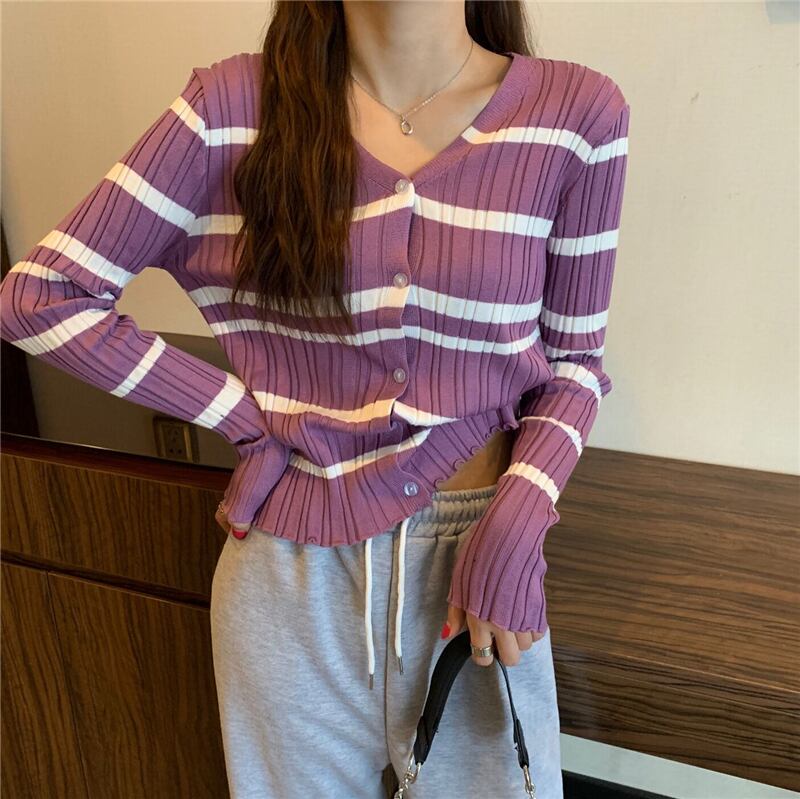 スタンダードストライプカラーVネックニット セータースリムショート ショート丈 ミニ ミニ丈カーディガン 上着シャツ ロング マキシロング丈 マキシ丈 レトロ 女性 レディース ゆめかわ34998549480 | nice import1