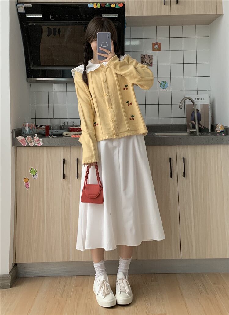 スタンダードニット セータージャケット 上着 コートルーズイエロー 黄色カーディガン 上着トップス レッド 赤 レトロ 刺繍 かわいい 可愛い ガーリー 大人可愛い 大人かわいい フェミニン 大人ガーリー 女性 レディース ゆめかわ5003924700 | nice import1