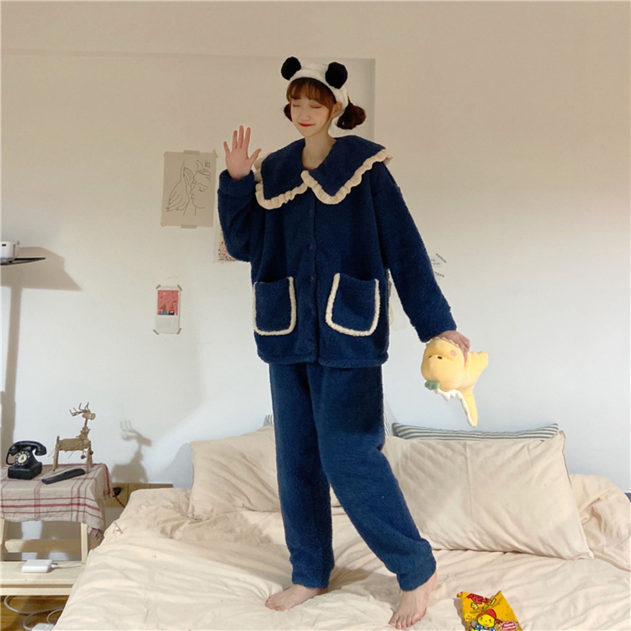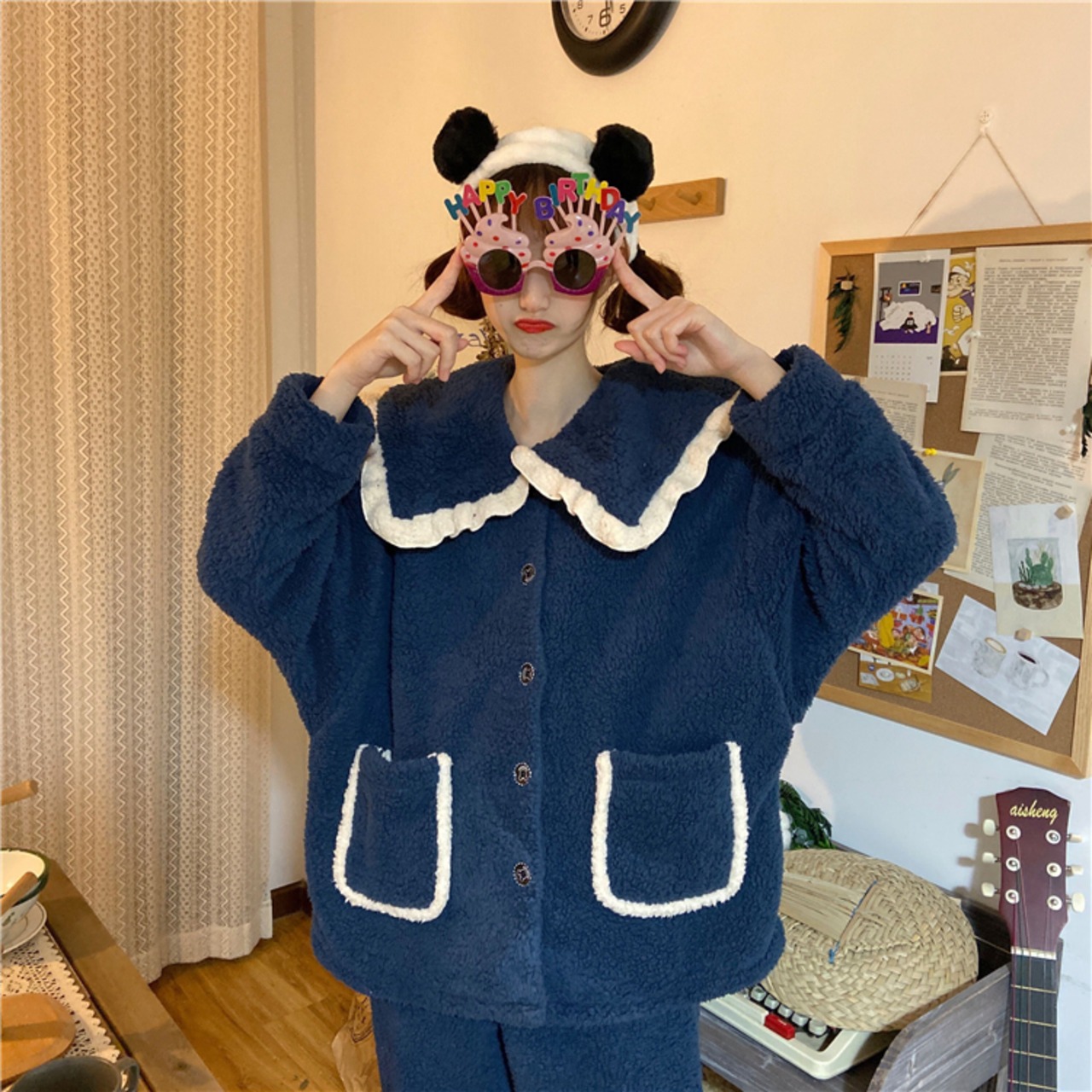色:青いスーツ