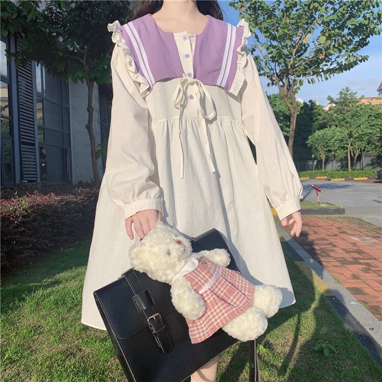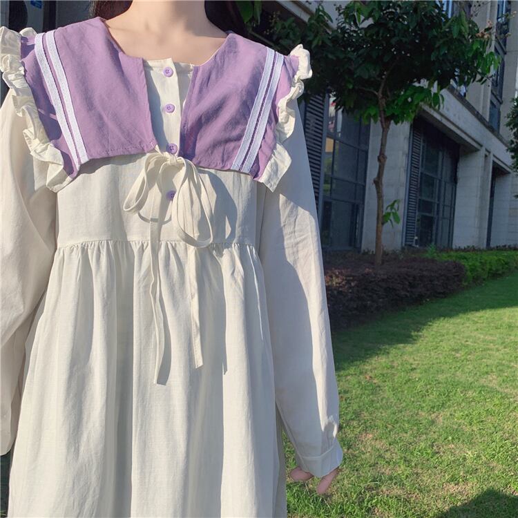 スカート カラーレース長袖 長そでスリーブ 袖ルーズウエストスタイルドレス ワンピース ロング マキシロング丈 マキシ丈 女性 レディース ゆめかわ26039318719 | nice import1