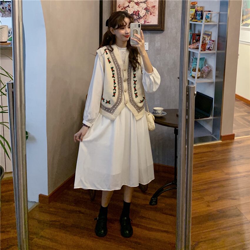 色:赤いベストシングル,アプリコットベストワンピース,ワンピース