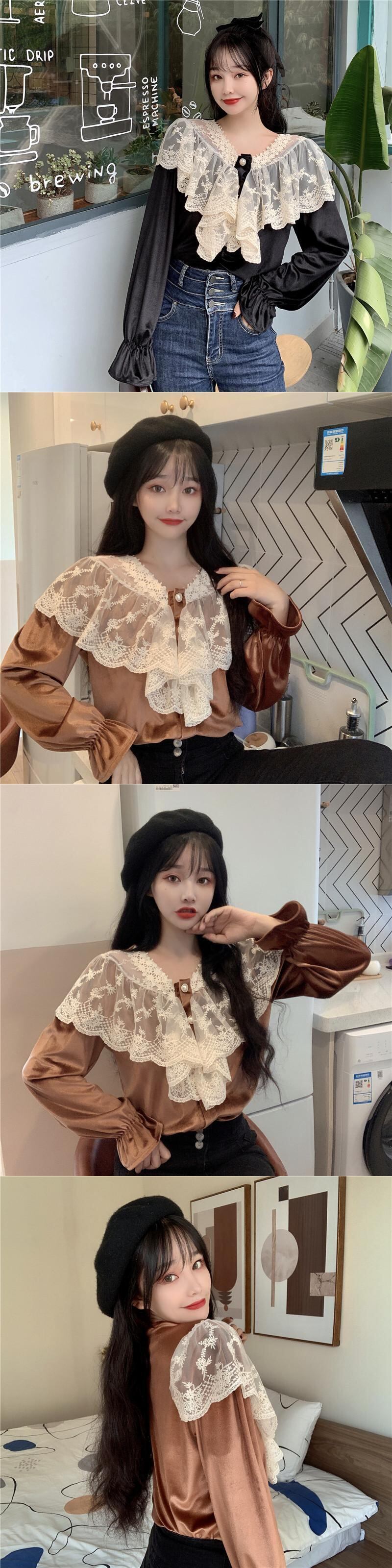 ルーズVネックレース長袖 長そでスリーブ 袖ベルベットシャツ レディース ロング マキシロング丈 マキシ丈 かわいい 可愛い ガーリー 大人可愛い 大人かわいい フェミニン 大人ガーリー ステッチ 女性 レディース ゆめかわ51811357962 | nice import1