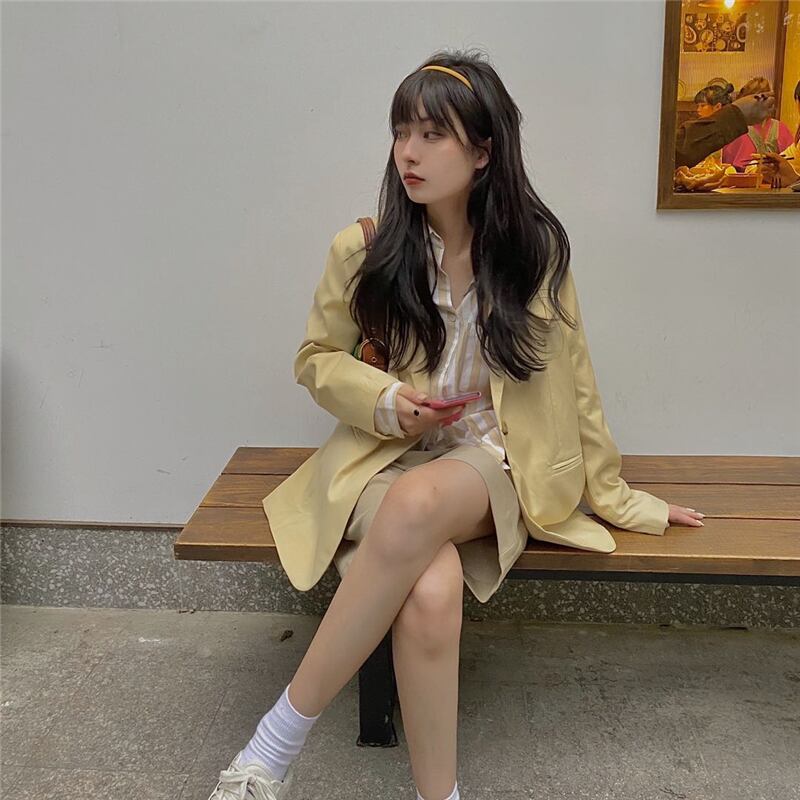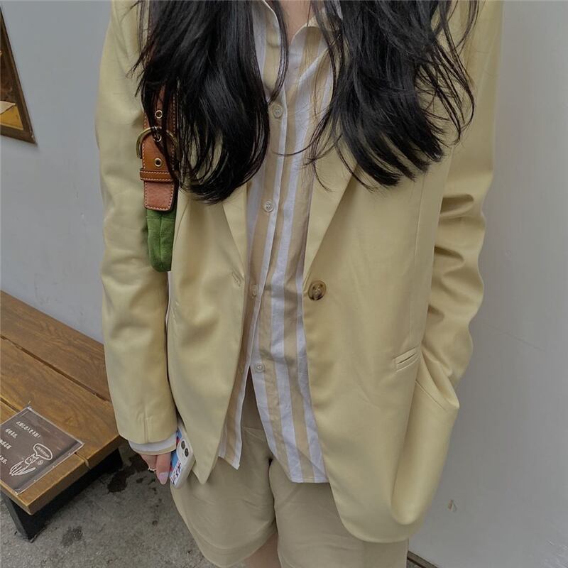 色:イエローストライプシャツシングル,ハニーカスタードスーツジャケットワンピース