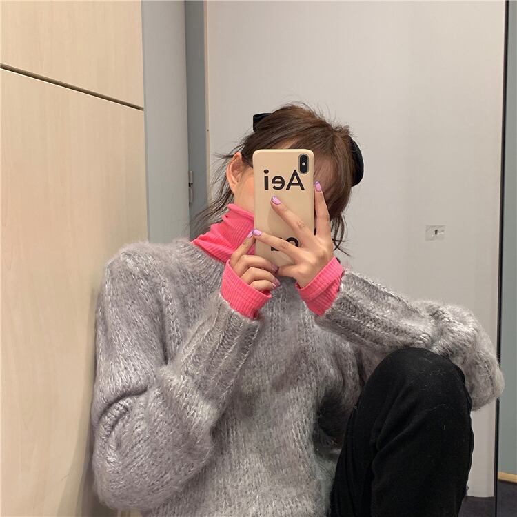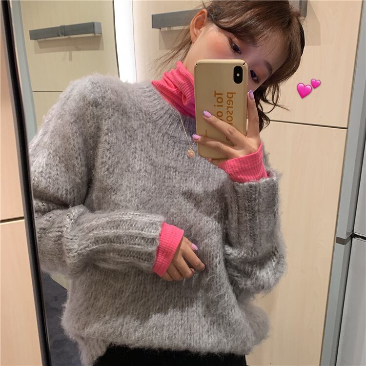 色:ピンクのセーターシングル,グレーセーターシングル,ホワイトベースシャツワンピース,ピンクのボトムスシャツワンピース