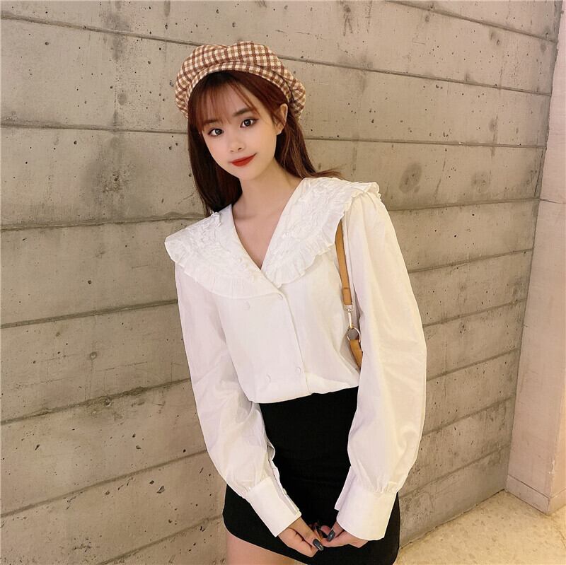スタイルシャツ レディースルーズラッフル フリルカラー長袖 長そでスリーブ 袖 ロング マキシロング丈 マキシ丈 かわいい 可愛い ガーリー 大人可愛い 大人かわいい フェミニン 大人ガーリー ステッチ 女性 レディース ゆめかわ26666987494 | nice import1