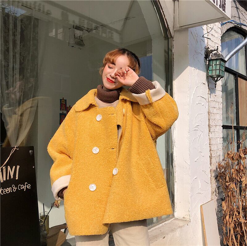 イエロー 黄色ダブルブレストコート ルーズレディース かわいい 可愛い ガーリー 大人可愛い 大人かわいい フェミニン 大人ガーリー 女性 レディース ゆめかわ87819849646 | nice import1