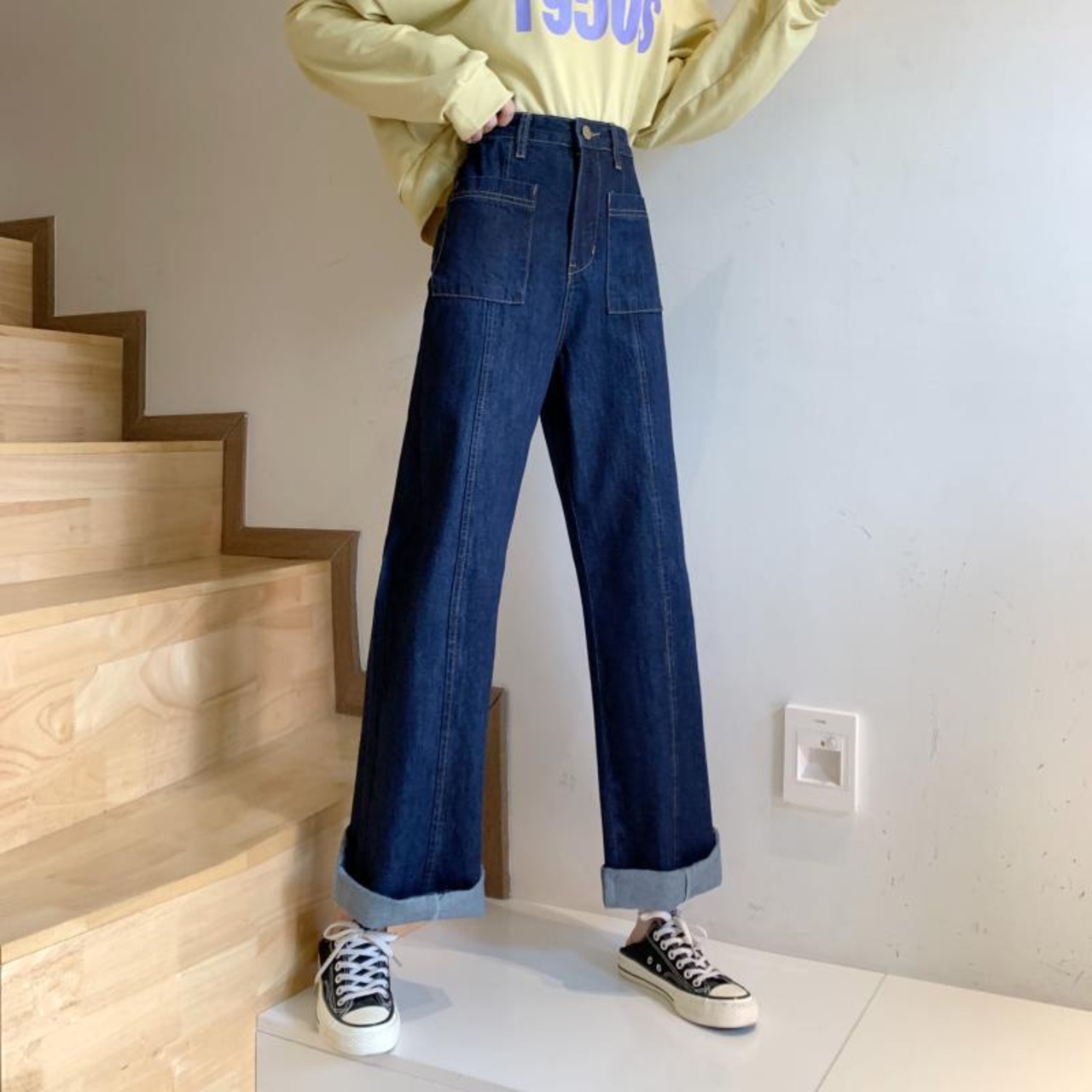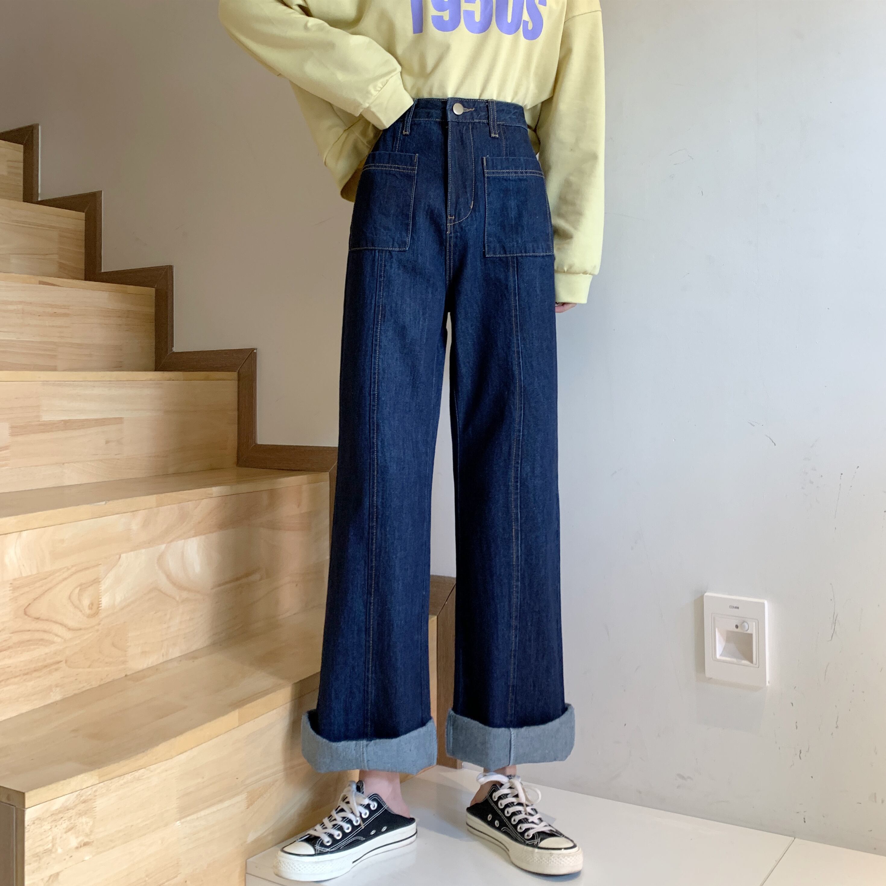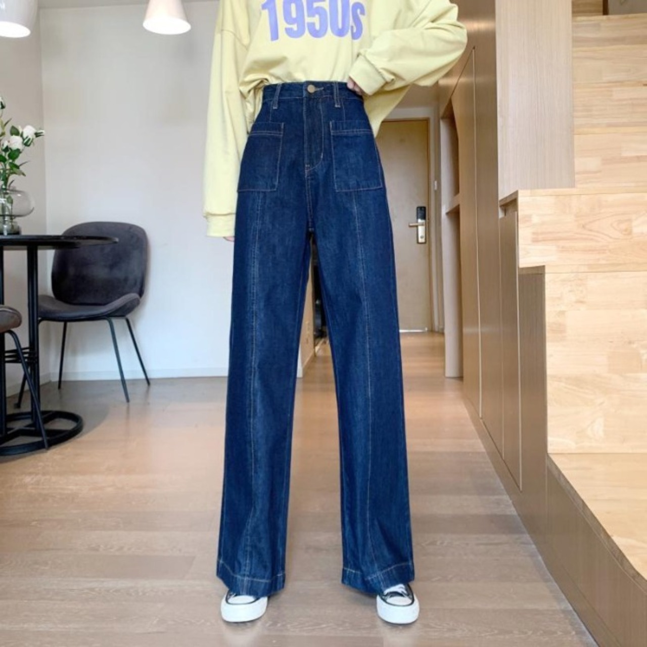 ルーズハイウエストウエストワイドレッグパンツ スタンダードカジュアルジーンズ デニム ハイウェスト レトロ ワイドパンツ 女性 レディース ゆめかわ20334288378 | nice import1
