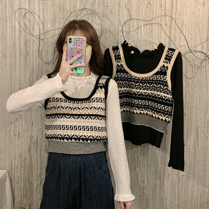 ソリッド カラートップス スタンダードルーズノースリーブニット ロング マキシロング丈 マキシ丈 レトロ 袖なし ソリッドカラー 女性 レディース ゆめかわ83460117651 | nice import1