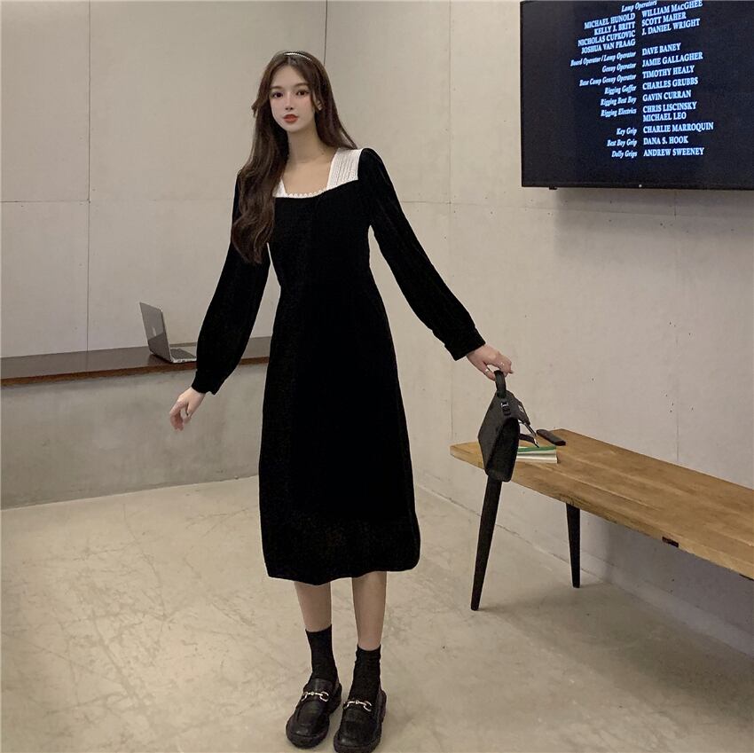 スカート レディーススタンダードベルベットブラック 黒ドレス ワンピースカラー ロング マキシロング丈 マキシ丈 レトロ スクウェア スクエア 女性 レディース ゆめかわ17949200229 | nice import1