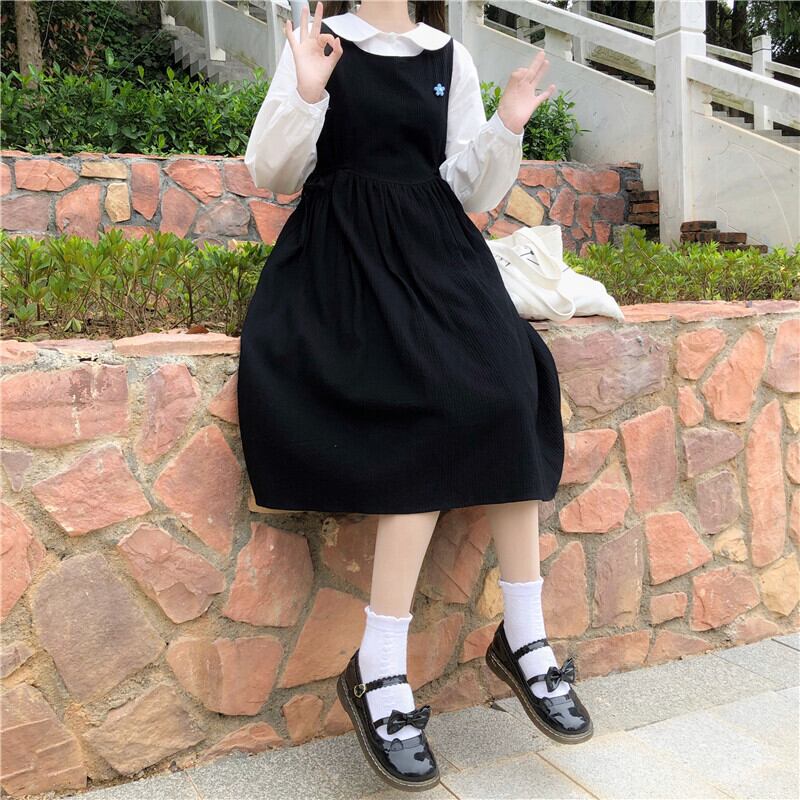 色:ブラックベストスカートワンピース,白いシャツワンピース