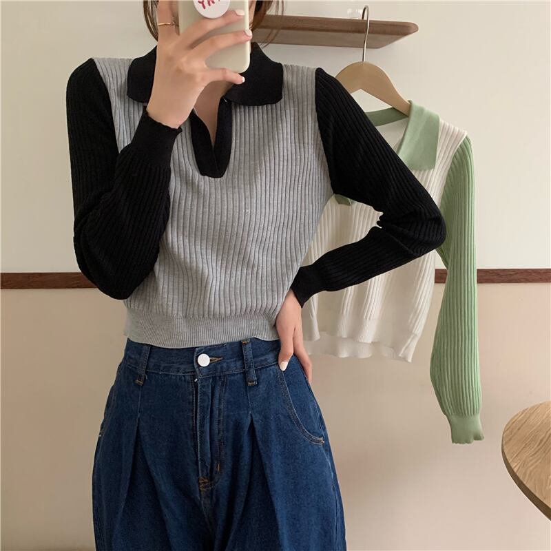 Vネックカラーニット セーターレディース薄手ハイウエストウエストショート ショート丈 ミニ ミニ丈プルオーバー トップス ハイウェスト ロング マキシロング丈 マキシ丈 女性 レディース ゆめかわ60424623126 | nice import1