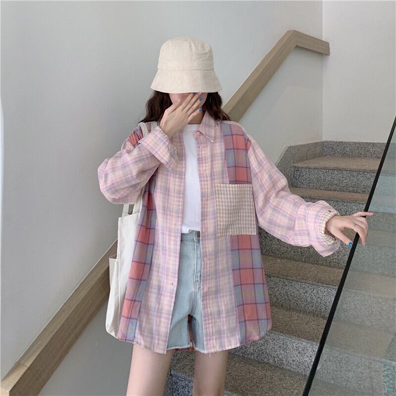スタイルルーズ格子柄 チェックシャツ ブラウス スタンダードカーディガン 上着 ロング マキシロング丈 マキシ丈 レトロ トップス ステッチ 女性 レディース ゆめかわ97348178338 | nice import1