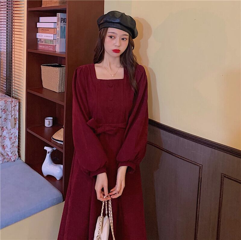 スカート カラー長袖 長そでスリーブ 袖ウエストバンド薄手ドレス ワンピース ロング マキシロング丈 マキシ丈 リボン スクウェア スクエア 女性 レディース ゆめかわ1698301367 | nice import1