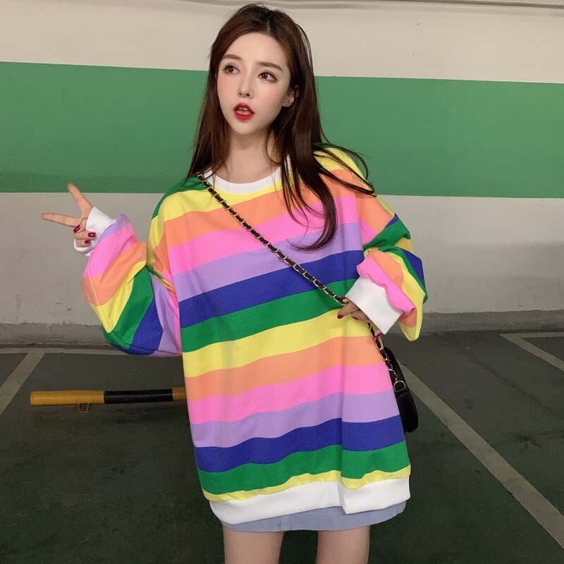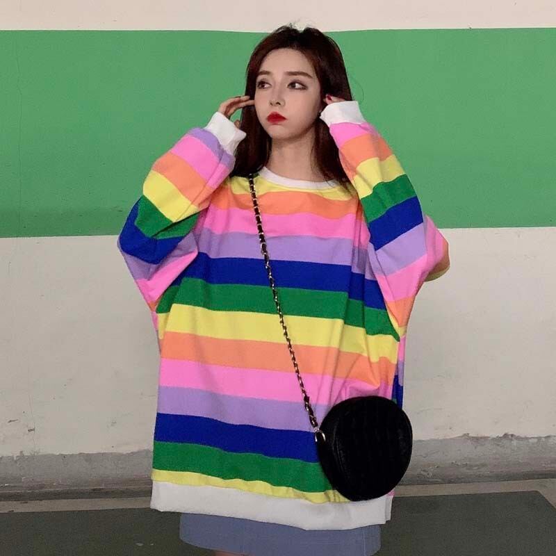カラーストライププルオーバー ニット セータールーズ薄手スタイルブラウス シャツ トップス かわいい 可愛い ガーリー 大人可愛い 大人かわいい フェミニン 大人ガーリー 女性 レディース ゆめかわ93929869656 | nice import1